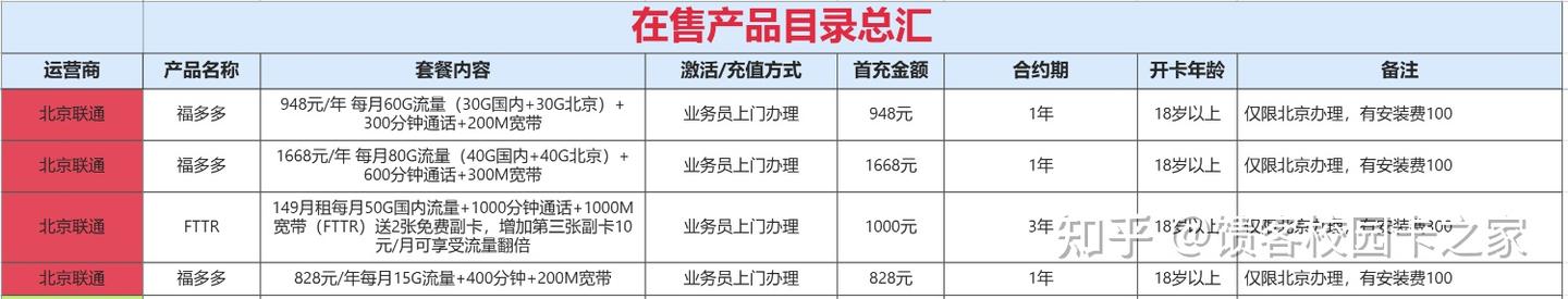 福卡Pro版 迎春卡 套餐价格 500一年 500一年 流量 100G国内通用 30G国内+30G北京 通话 1000分钟国内 200国内+1300北京 宽带 500M 200M 安装费 200 200 续约 第二年看运营商最新政策 第二年看运营商政策