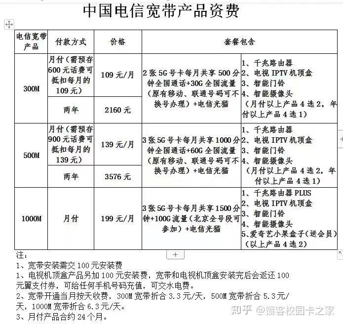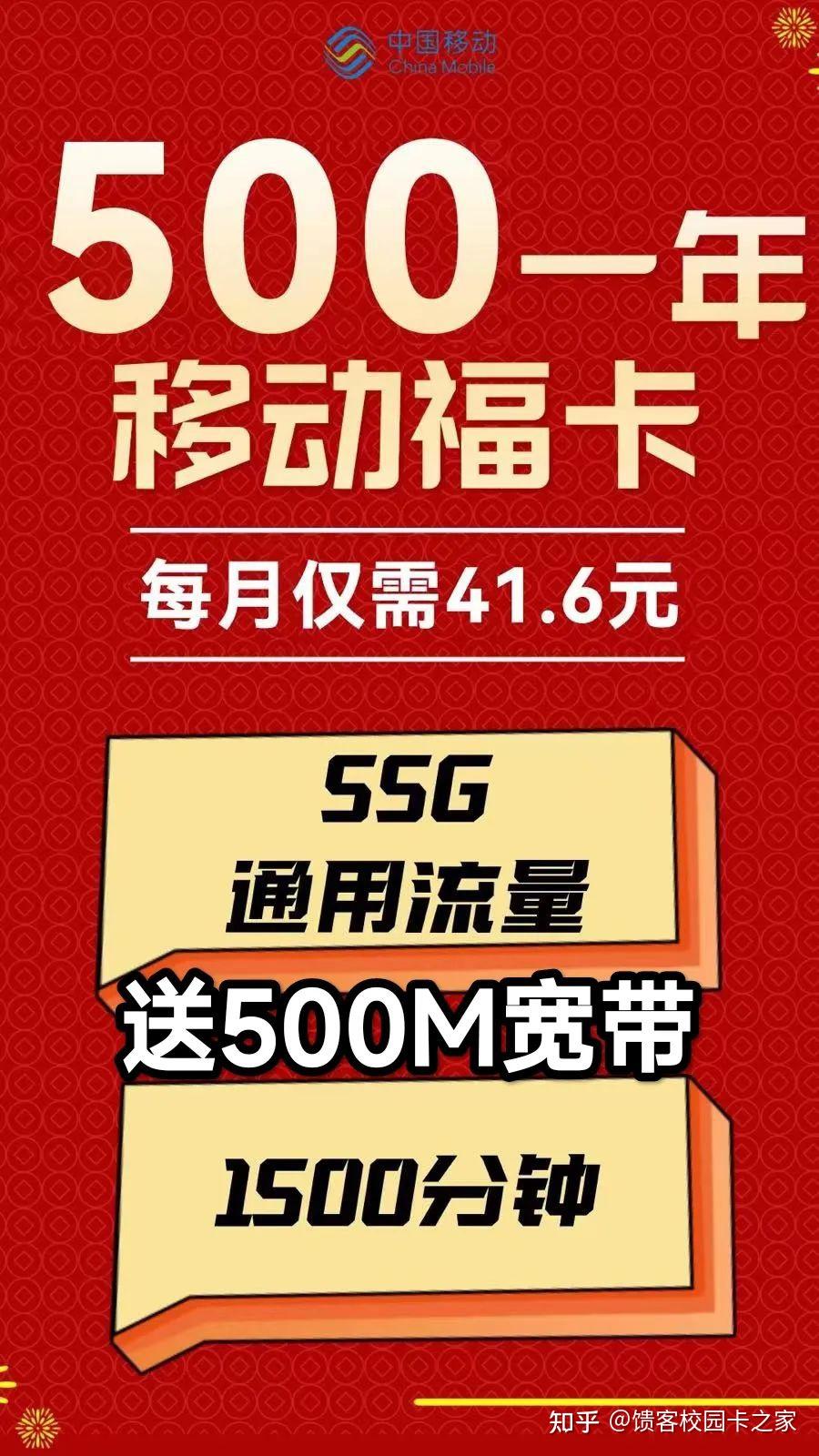 套餐呀,电信联通的套餐有吗?答:有的呀,移动没覆盖的小区可以考虑考虑电信联通的,看下文的介绍。套餐名称 福卡500一年3元月租卡 套餐内容 500M宽带55G通用流量1500分钟通话 套餐资费 500包一年优惠期一年,一年后看到时候的政策也可以改别的套餐或者注销 安装费用 宽带安装费200元(移动统一收费)无其他收费项目 办理方式 填写登记表,附近业务员上门办理号卡然后安装宽带 关于移机 宽带可以办理移机,中途搬家可以联系移动客服办理移