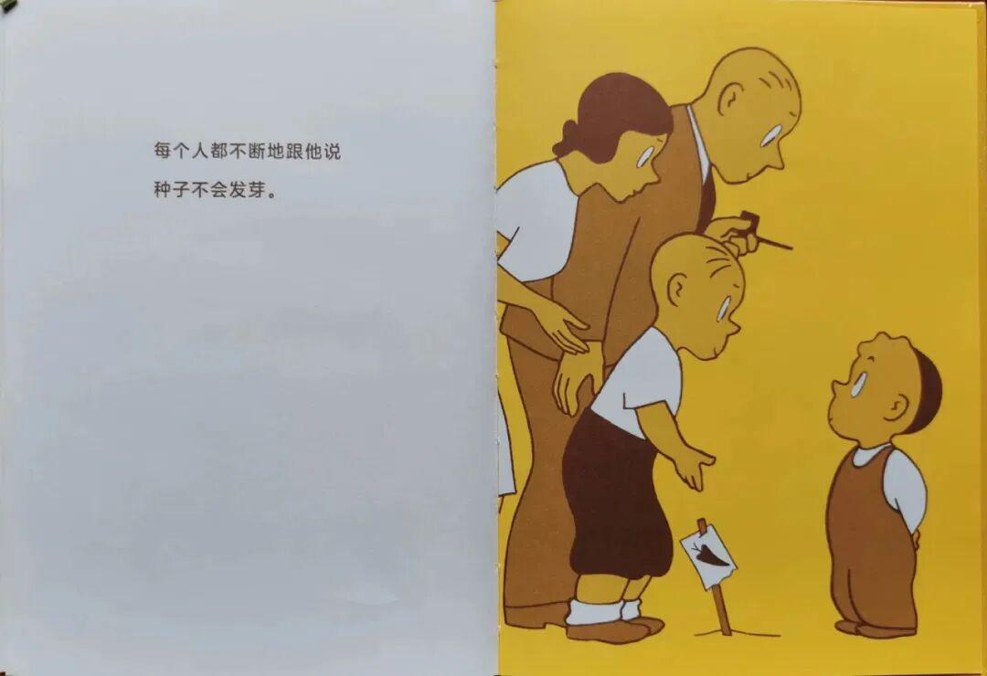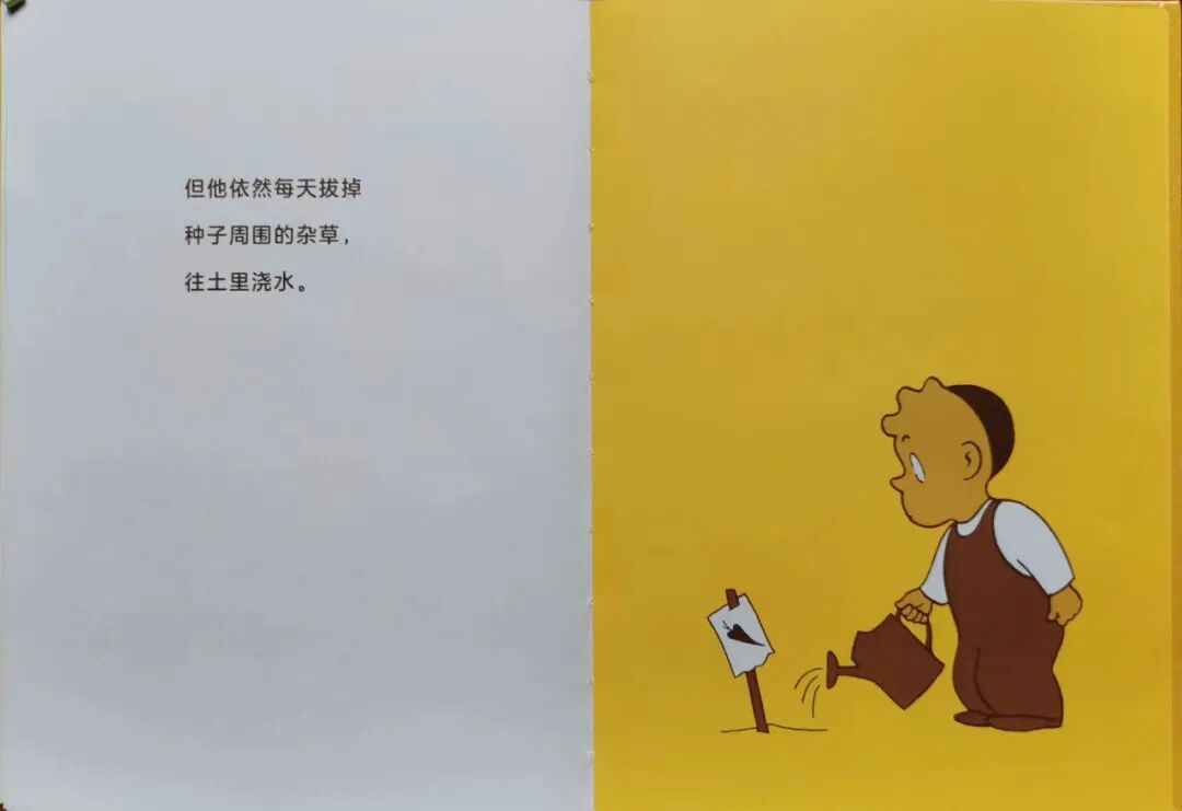 ~遇见好书~ & Meet a good book 童年有书 未来有梦 打开绘本 一起看世界~ 朗读者:米语诚妈妈 绘本导读 这是一个关于坚持和自信的故事。一个小男孩种下了一颗胡萝卜种子,然后耐心地等待着,悉心地照料着,可他身边的每个人都不断地说:“它不会发芽的。”然而小男孩顽固地相信着。终于,地里长出了一个胡萝卜——无论从哪个角度来说,这都是给予小男孩的一个好的奖励。面对大人们的质疑,小男孩儿以儿童特有的执著、坚定维护了自己的愿望,并尽全力去实现它,最后获得了丰厚回报。 故事内容 往期回顾 【故事盒子】绘本推荐《小熊宝宝绘本——收起来》 【故事盒子】绘本推荐《妈妈的吻》 【故事盒子】绘本推荐《笨拙的螃蟹》 -END- 图文编辑:唐文靖 审核:米兰 用爱护航 让美润心 ··· ···· ··· 每一个孩子, 因得到爱而懂得以爱回报生活, 因感知美而愿意用美创造世界。![]()