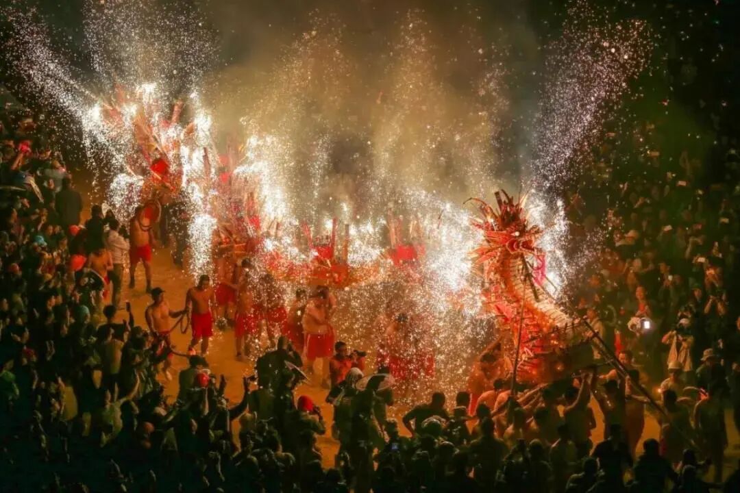 绚丽的烟花、震耳的鞭炮声和锣鼓声,火龙与火花交织在一起,如此盛况与如潮的人群相映成趣,再一次重现了独具特色的元宵盛景,也将节日的氛围推向了高潮。精彩的火龙表演吸引数以万计的群众前来观赏,如此盛况几乎年年如是,世代相传。