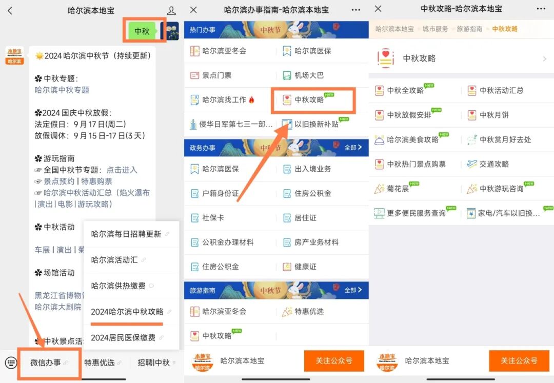 各位小伙伴 马上就是中秋假期啦 哈尔滨又将迎来人从众模式 为了更好的服务大家 哈尔滨地铁运营时间将调整 为方便市民“中秋”假日期间出行,2024年9月14日至9月17日,地铁1、2、3号线运营服务时间由6时至22时30分调整为6时至23时。 特此公告 哈尔滨地铁集团有限公司 2024年9月13日 这下大家可以放心出去玩啦 咱们哈尔滨中秋 有很多免费、好玩的活动 小编一直在收集整理哦 长按识别下方二维码 进入【哈尔滨本地宝】公众号 在对话框发送【中秋】 获取免费门票领取入口、更多中秋活动、游玩攻略 底部菜单栏点击【微信办事】→“中秋攻略” 获取中秋出行信息、免费活动、出游推荐等 此外 乘地铁的时候 不要忘记使用 ↓↓↓ 2024年8月26日至2024年11月30日(视项目推进情况调整) 哈尔滨地区中国银行手机银行APP银联乘车码客户需绑定中国银行黑龙江省分行银联(62开头)借记卡、信用卡支付。 哈尔滨城市通融合支付设备覆盖的哈市公交、地铁、智轨、国有江上轮渡等领域(不含五常、宾县、延寿地区公交) 用户登录中国银行手机银行APP,在“扫一扫”或“付款码”页面,点击“乘车码”功能,进行支付,可享五折乘车,单笔封顶优惠1元。单客每日可享2次乘车优惠,每月限10次。名额有限,先到先得,用完为止。 方法一: 图源:哈尔滨城市通 方法二: 点击下方名片关注【哈尔滨本地宝】,回复【城市通】即可快速获取开通入口 1.符合同一设备、同一注册手机号、同一银行卡预留手机号、同一银行实体卡号、同一身份证号或者同一APP账号等任一条件的,均视为同一用户。用户需使用本人的电子设备、银行卡等亲自参加。 2.用户每日可参与2次中国银行手机银行乘车码乘车活动,每自然月可参与10次,活动名额有限,先到先得。 3.享受优惠的交易如发生退货、撤销,则视为用户放弃优惠,退款金额扣除享受的优惠金额后退回至用户原付款卡,该次优惠次数视为已使用。 4.由于用户电子设备不支持、APP未更新到最新版本、卡片挂失、换卡等自身原因导致无法享受优惠的,该优惠次数后续不予补发。 5.为使更多的用户享到本活动优惠权益,对使用或涉嫌使用违反活动规则或不正当方式套取银联优惠的用户及其所使用的工具,包括但不限于手机号、银行卡号、APP账号等,中国银联和商户有权不予优惠、追回已发放的优惠,并拒绝其今后参加银联的任何优惠活动。 6.本次活动所有时间点以中国银联后台系统时间(北京时间)为准。如出现不可抗力或情势变更等情况(如重大灾害事件、受有权机关指令需停止或调整的、系统故障需暂停的、活动中存在违规作弊行为损害消费者权益的),在法律许可的范围内,银联保留调整、暂停和终止本活动的权利,并经公告后生效。 7.用户参与活动即视为理解并同意本活动细则。在法律许可的范围内,中国银行保留调整、暂停和终止本活动的权利,并经公告后生效。 8.若咨询相关活动细则、查询具体交易、或发现已发布活动范围信息与实际不符等,可致电净蓝科技有限公司客服电话4000110918(工作日9:00-17:00)。 9.若对中国银行手机银行 APP的使用有疑问,可致电中国银行咨询。中国银行客服热线:95566(周一至周日,全天24小时)。 具体活动规则以中国银行手 地铁几点关门机银行app为准 为了不错过我们的消息 要记得“关注+星标”哦 右下角,您点赞和在看 小编工资涨2毛 哈尔滨本地宝推荐服务 回复【社保卡】获取哈尔滨社保卡办理指南 回复【补贴】获取哈尔滨人才补贴、购房补贴、消费补贴等各类补贴申请指南 回复【七三一】查看侵华日军第七三一部队罪证陈列馆预约入口、参观指南、咨询电话 回复【机场大巴】可查询哈尔滨机场大巴线路、时间、联系方式、购票 回复【丁香人才周】可获取2024丁香人才周招聘公告、岗位表、招聘条件、招聘流程 ▌说明:本文由哈尔滨本地宝编辑整理发布 如涉及侵权或对版权有疑问,请邮件联系liushuai@bendibao.com摄图网 本地宝综合整理 侵权请联系删除! ▌来源:哈尔滨地铁集团有限公司 摄图网 本地宝综合整理 侵权请联系删除! ▌编辑: 芬达(张锋园) ▌商务合作:电话:4009999087 QQ:4009999087 点击添加合作微信 注:手机QQ添加时,若无法找到,请选择“找公众号”即可添加 点击阅读原文,获取哈尔滨【城市服务】全攻略蓝字关注,回复“地铁地铁几点关门”获取更多信息
