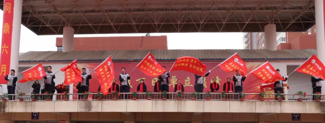 张冠群、梁忠林、王俊红、王志彪为高三班级学生代表授旗。旌旗猎猎催人进,昂首阔步赴征程,这一面面班旗是每个班级的精神和信仰,是指引前进方向的精神力量。