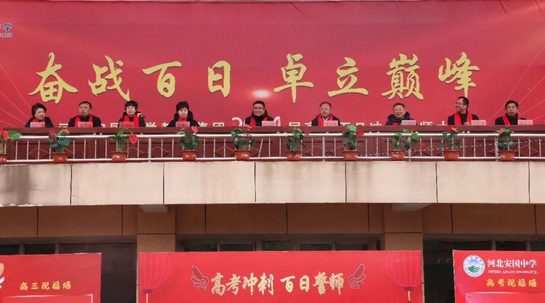 百日扬鞭策马,六月金榜题名。2月28日,河北安国中学教育集团高三年级全体师生齐聚操场,隆重举行“奋战百日,卓立巅峰”百日誓师大会。市委书记张冠群出席会议并讲话。市长梁忠林,市人大常委会主任王俊红,市政协主席王志彪出席大会。市教体局党组书记、局长赵聪丽主持活动。
