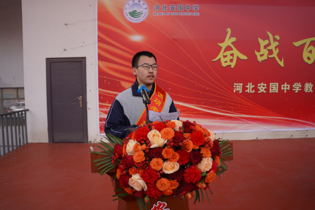 张冠群强调,一要科学备考,再创高考新辉煌。要始终保持勇战勇胜、再战再胜、决战决胜的信心,全力加强备考。落实“一生一策”培优措施,深入挖掘学生潜能,找出质量提升的突破点和增长点,通过扎实的备考计划和高效的管理措施,争取考入“双一流”大学人数和清北人数取得新突破,全力以赴打好2024年高考攻坚战。二要履职尽责,擦亮教育金名片。要按照“保定领先、河北有名气、全国有影响”的目标,强化高中内部管理,努力让学生实现低进高出、高进优出,以优异的高考成绩带动全市教育工作“全面见成效”,进一步擦亮“安国教育”金字招牌,让安国的孩子们在家门口就能够享受到高质量、高品质的教育。三要奋战冲刺,努力拼搏不遗憾。同学们要珍惜这宝贵的百日时光,磨砺心智,沉淀心境,全力以赴应对高考这场“人生大考”的拉练赛。要保持健康的心态和乐观的情绪,永远昂扬向上,勇敢面对挑战和机遇!
