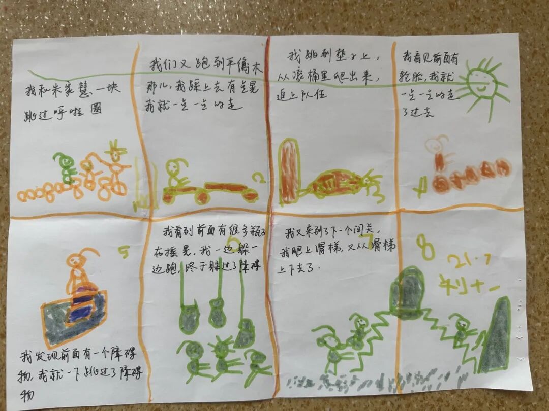 奋斗有痕 时光的步履 记录着孩子们的收获 也沉淀着教育的变化 课堂更精彩、环境更美好、成长更快乐...... 每一处改变聚集精彩 每一处精彩汇聚力量 深耕育人 追光而行 用最坚定的力量 伴少年向阳生长 2022年2月教育部印发《幼儿园保育教育评估指南》中对师幼互动提出了明确要求,其中第28条指标提出了非常具体的、可操作性的“教师行动策略”,要求教师要重视幼儿通过绘画、讲述等方式对自己经历过游戏、阅读的图画书、观察等活动进行表达表征,教师能一对一倾听并真实记录幼儿的想法和体验。通过绘画、讲述等活动,将幼儿的亲身经历进行再现,帮助幼儿还原真实的游戏和生活,使幼儿表达内心真实的想法,以便教师理解幼儿,支持幼儿的游戏和学习。 (一)提高幼儿精细动作发展,促进逻辑思维能力的发展,培养倾听表达能力及学习适应能力,争取做到幼小无痕衔接。 (二)通过“一对一倾听”教师了解幼儿的思维与游戏,读懂幼儿的行为,更有效地观察、支持与回应幼儿的游戏,从而提高教师解读幼儿的能力,做懂幼儿的教师。 (三)通过“一院三日”的活动,家长了解幼儿园的教育理念和孩子的学习方式,转变 “重知识轻习惯”的传统观念,实现教育向家庭的延伸。 以“表征”为契机 促进幼儿发展 儿童有一百种语言来表达他们的想法,表征就是其中一种。在幼儿园,教师会利用游戏、生活和课程的教育契机,用多种倾听的方式走进儿童的视角,了解孩子真实的想法,更好的观察、支持与回应幼儿。 1.让表征走进孩子的真实生活 一日活动中教师抓住生活中的细节,用表征画帮助幼儿记录自己的经历和感受,教师在倾听中了解幼儿的真实想法。 例如:体检抽血后的表征画面中,针管很大,孩子很小。教师抓住这一契机,了解到孩子虽然表面很坚强,但是在他内心是充满恐惧的。于是老师在一对一倾听时,鼓励他:“你虽然害怕但还是配合大夫完成抽血工作,你很勇敢。下次再遇到类似的事情,相信你也能勇敢的面对。 2.让表征读懂孩子的游戏行为 在幼儿园,游戏就是孩子的学习。游戏结束后,幼儿将自己游戏过程用表征的形式记录下来。 根据孩子不同阶段的发展,小班采用“涂鸦”、中班“四宫格”、大班“六宫格”或者“八宫格”,幼儿用自己的方式记录游戏的过程和经验。教师进行一对一倾听,了解幼儿的游戏与合作,通过提问引发幼儿思考,进一步读懂幼儿的游戏行为。 3.让表征促进幼儿的主动学习 开展主题课程时,教师也会通过表征、讨论等多种方式倾听儿童的想法,抓住儿童的兴趣,通过开放性地提问,支持和拓展幼儿的学习,让碎片式的学习向系统性课程转接。 以“问题”为导向 提升专业素养 随着表征开展的深入,教师在倾听中遇到了各种各样的问题,为了解决这些问题,幼儿园构建“研、学、思”一体的学习平台,提升教师倾听、解读幼儿的能力。 1.研——思维碰撞共成长 采取“六步走”教研模式(交流分享--提出问题--问题研讨--形成策略--班级实践--交流分享)。在教研中聚焦倾听和解读实践中的真问题,进行分析、研究,探索切实可行的措施,然后再实践、再教研,致力于解决实际问题,增强教研的时效性。 2.学——以读促学强本领 组织教师共读《对话儿童》、《倾听儿童——马赛克方法的使用》等书籍,采取“1+1+1”阅读模式,即每天阅读一章节、每周群内一分享,每月一次读书沙龙,让教师分享如何倾听、如何解读幼儿的游戏行为、如何提供机会引发幼儿深度思考等,提升教师的专业能力。 3.思——以思促改共提升 教师把学习的理论知识,运用到实践中,通过不断反思、改进、再实践,从而提升分析、解读的能力。 以“带动”为宗旨 实现“合·心”家园 儿童的成长需要家园双方共同努力、相互合作,才能发挥最大效果。幼儿园秉持“引领一个家长,温暖一个孩子,幸福一个家庭,成就一个未来”的家园共育理念,通过“一院三日N延伸”的方式,向家长渗透游戏后的表征对于幼小衔接的价值,转变家长的传统观念,共绘家园同心圆。 1.科学引领,促家长理念提升 “一院”即父母学院,成立以园内骨干教师组成的教师讲团,通过共读一本书和分享一本书的方式,科学的解读幼儿的表征画和发现表征画背后的价值,提升教师的专业能力,引领家长理念提升,实现全环境育人,让家长走进孩子,读懂孩子,从而减缓幼小衔接的坡度。 2.亲身体验,科学育儿方法 为让家长将学习的理论知识运用于实践,我们通过“三日“(即家长教研日、游戏体验日和家长开放日)让家长在体验中了解具体的做法。 3.家园携手,向家庭延伸教育 家庭教育是幼儿园教育的延伸,通过家长学习表征画、体验表征画、践行表征画,一步一步让家长感受到了游戏、表征画的教育价值。我们倡议家长充分利用周末时间,陪伴孩子把自己愉快的周末或者是有意义地一件事用绘画的方式进行记录,家长再对其倾听,营造一个轻松愉悦的家庭氛围,让孩子想表达、愿表达,乐表达,让家长轻松走进孩子的内心,支持孩子的兴趣,了解孩子的需求,形成良性的亲子互动关系,为幼小衔接做好充分的心理准备。有99%的家长参与到我们的活动中,以正确的方式遇见孩子的成长。