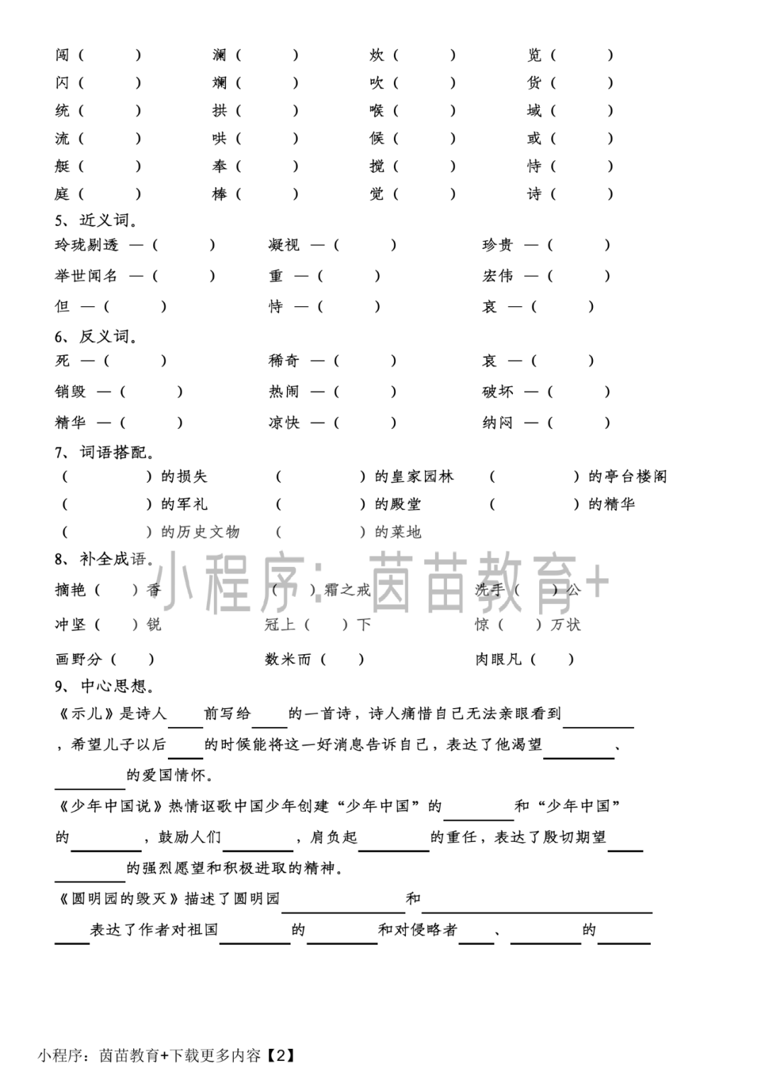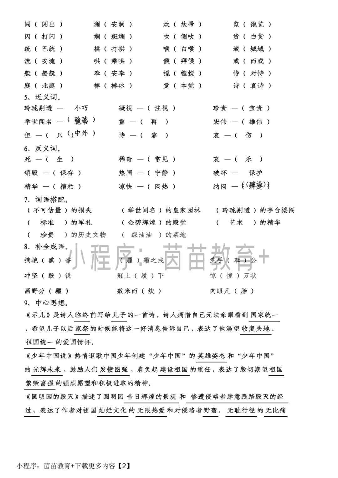 如果需要其他科目的资料也可以直接搜索小程序“茵苗教育+”下载各科目的资料。