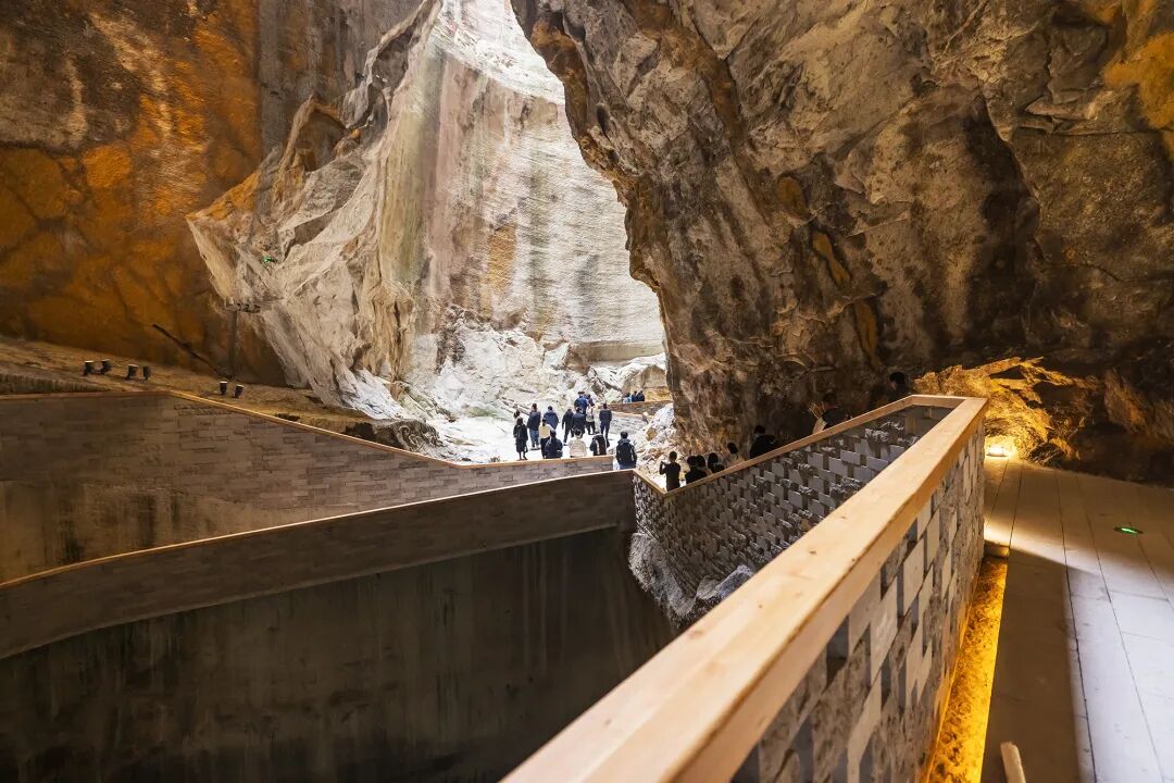 黄岩石窟曾经被岁月尘封的废弃矿坑,如今华丽转身,化身为一座熠熠生辉的文化艺术殿堂,承载着历史的厚重与现代的活力,喜迎八方来客。