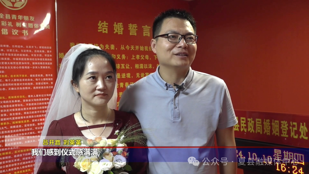 在夏县民政局的婚姻登记处,一对新人吕开路和刘英英在国徽见证下庄严宣读“结婚誓词”,工作人员现场为新人颁证,协助新人拍照打卡留念,用镜头记录幸福时刻,定格美好回忆。一场简约颁证仪式让新人感悟铭记婚姻家庭蕴含的责任与担当,践行“风雨同舟、相濡以沫、互敬互爱”家庭观。