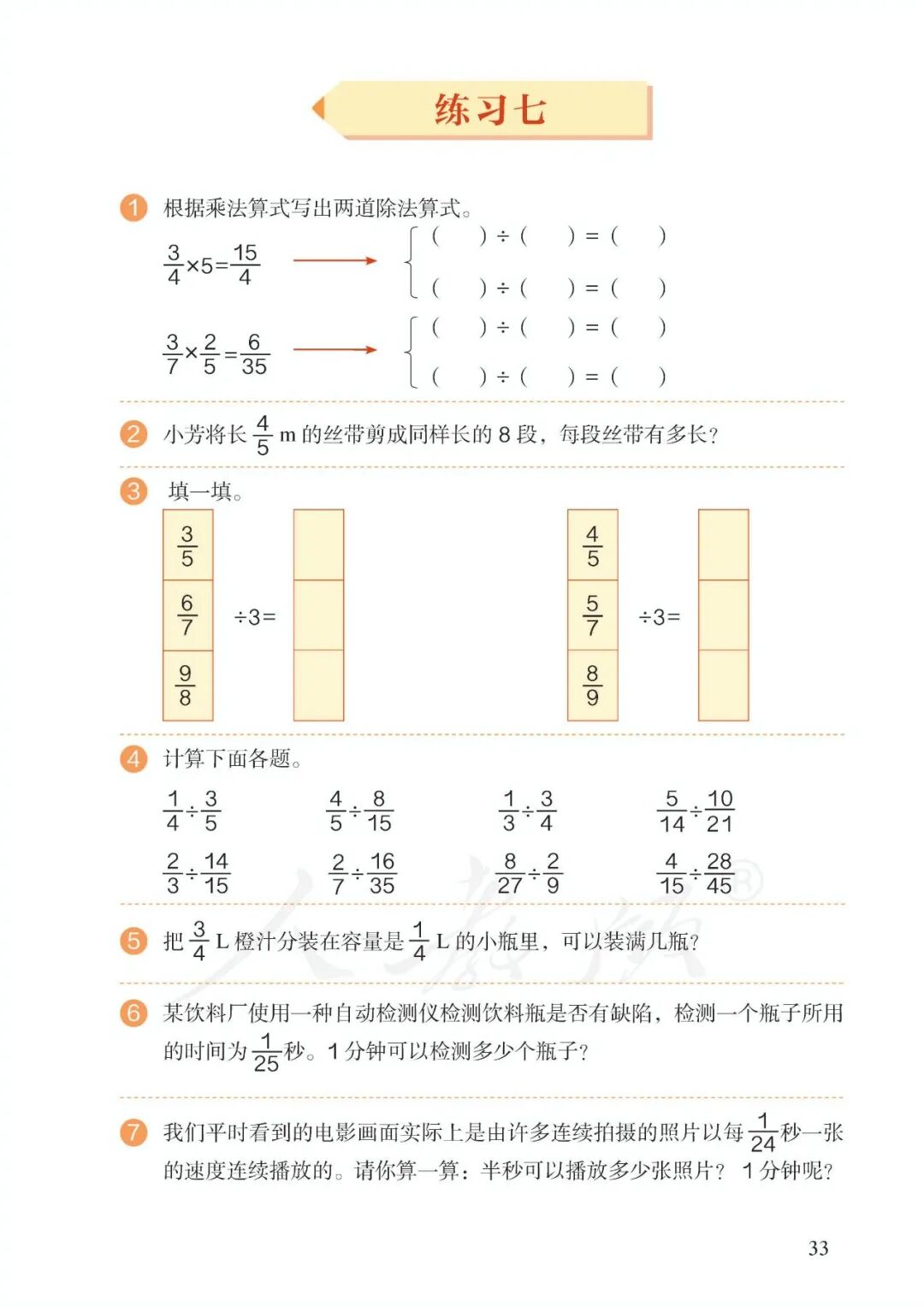 第三单元、分数除法
