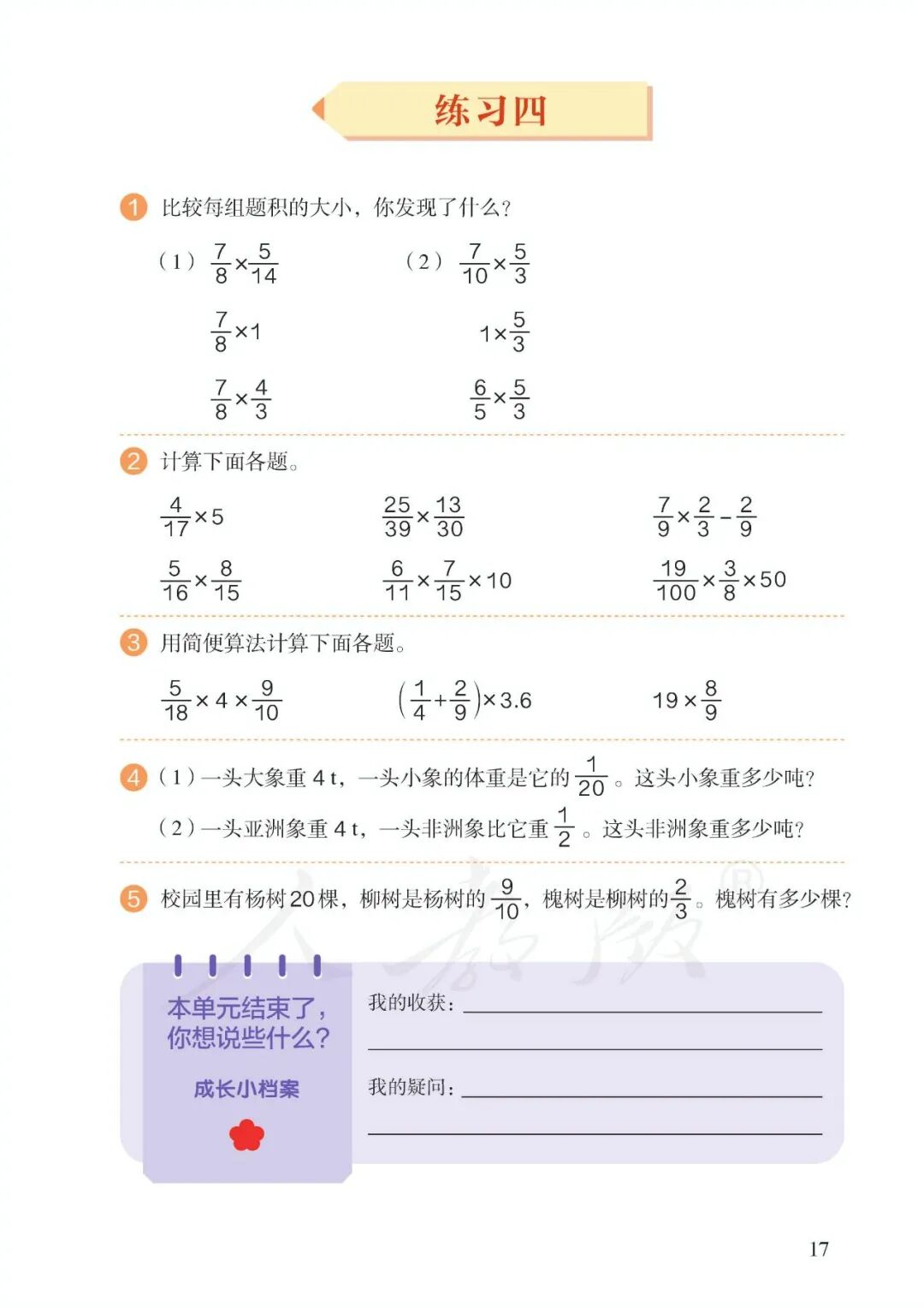 第一单元、分数乘法