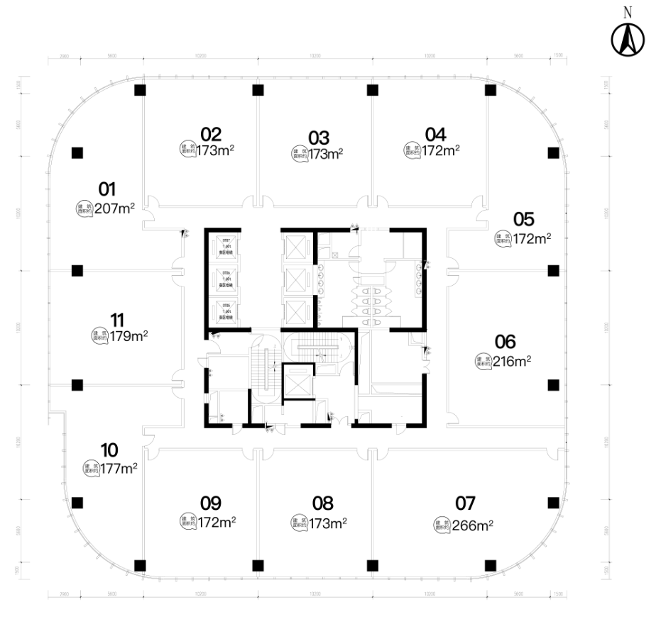 落地幕墙外墙体系,营造极致开阔的室内空间视野;公共区域全精装,交通盒、消防楼梯均进行了瓷砖美化,带给客户五星级的感受。楼体泛光照明采用像素级泛光照明,清晰明亮,地标立显。