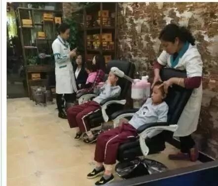 ▲专业老师帮助按摩鼻腔