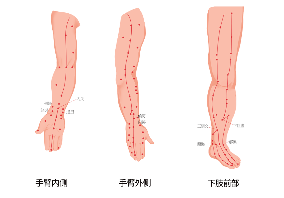 咳嗽时嗓子正中不适,按揉手腕部列缺穴、脚踝部照海穴。 咳嗽时嗓子两边不适,按揉手腕部阳溪穴、脚踝部解溪穴。 咳嗽时胸部痛,按揉手前臂内关穴、足小腿三阴交穴。 咳嗽时胸正中不适,按揉手前臂经渠穴、足小腿三阴交穴。 咳嗽时胸上部不适,按揉手前臂通里穴、足小腿三阴交穴。 咳嗽时乳房区域不适,按揉手前臂偏历穴、足小腿下巨虚穴。
