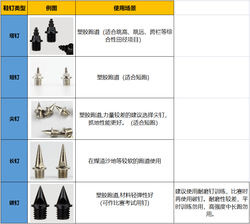 (4)如果是跳高和标枪,鞋钉越多越好,大多是11个。