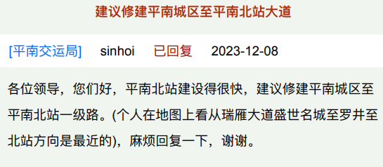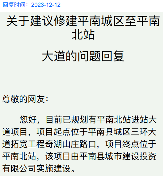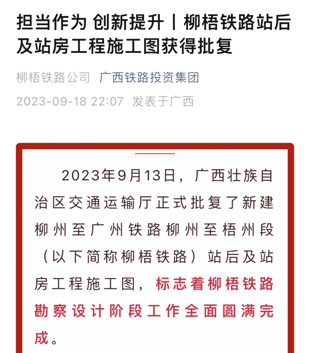 12月12日,官方回复了, 平南北站目前已规划有平南北站进站大道项目,项目起点位于平南县城区三环大道拓宽工程奇湖山庄路口,项目终点位于平南北站。 延伸阅读 近日 由广西交通投资集团投资建设 中交路建承建的 柳梧铁路LWZQ-5标平南北制梁场 一次性顺利通过国家生产许可证实地核查 成为全线首个完成取证的梁场 具备正式批量生产条件 据了解 柳梧铁路项目正线全长238.167公里 设计速度160km/h 全线共设5座梁场 平南北制梁场是全线规模最大的梁场 位于柳梧铁路项目平南北站货场范围内 2023年9月13日,广西壮族自治区交通运输厅正式批复了新建柳州至广州铁路柳州至梧州段站后及站房工程施工图,标志着柳梧铁路勘察设计阶段工作全面圆满完成,项目基本建设程序已全部完善。 据最近消息,新建的柳州至广州铁路柳梧铁路的柳州至梧州段建设现场展现出一片繁忙的景象。在象州、武宣、东乡、桂平、平南和藤县等地,将迎来新的铁路客运站。 截至今年8月底,柳梧铁路项目已开工累计完成投资超过90亿元,占工程建设总投资的近30%。 柳梧铁路是柳州至广州铁路的重要组成部分。该铁路是国家“十四五”规划纲要确定的重大工程项目,旨在实现国家《中长期铁路网规划》中西南地区至珠三角的普速铁路通道 平南北站。同时,它也是一条兼顾客货运输的区域性干线铁路。该线路的建成通车对于完善区域铁路交通运输网,加快构建跨区域铁路运输大通道,推动桂中东地区更好地融入粤港澳大湾区具有重要意义和作用。![]()