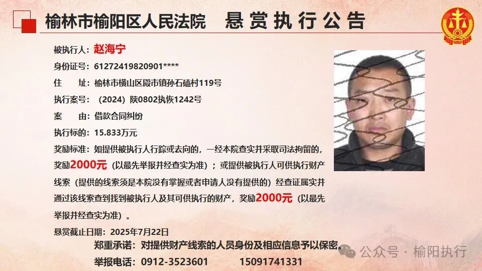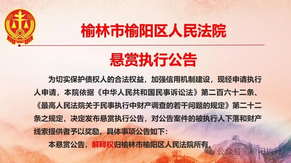 如提供被执行人行踪或去向的,一经本院查实并采取司法拘留的,奖励2000元(以最先举报并经查实为准);或提供被执行人可供执行财产线索(提供的线索须是本院没有举报或者申请人没有提供的)经查证属实并通过该线索查到找到被执行人及其可供执行的财产,奖励2000元(以最先举报并经查实为准)。