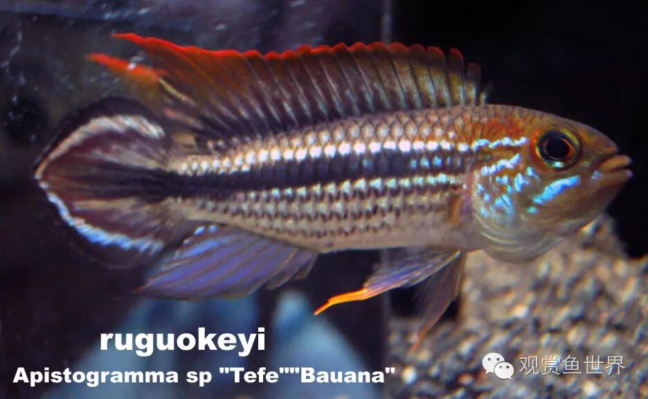 在来说泰菲,泰菲阿卡西是阿卡西品种中最为知名的,也是最霸气的一种,现在已经和其他产地的阿卡西彻底分开了,是一个独立的品种,根据科学家的研究,其基因构成与其他阿卡西不同。这也就是说如果用泰菲阿卡西与其他品种的母鱼交配,所繁殖出的子代是不带有锯齿纹表现的。泰菲阿卡西最大的特点就是其身体两侧所带的8条暗红色的锯齿状条纹(一侧4条),这也是泰菲区别于其他品种的特征。本种的产地为泰菲湖和泰菲河的诸多流域。尾巴的表现大多数为黑白尾,彩尾的表现形态不多。