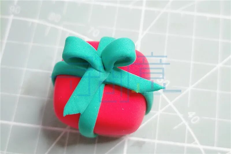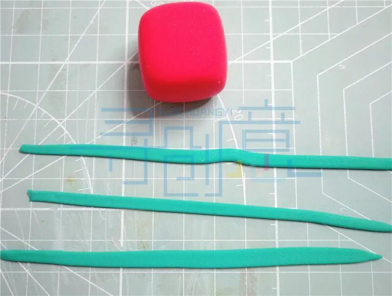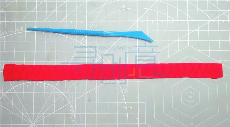 红色的超轻粘土搓长条压扁, 用工具切出纹理制作一条围巾