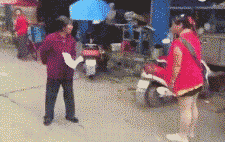 这个就要考古到去年网上流传的大妈与人吵架的搞笑视频了。
