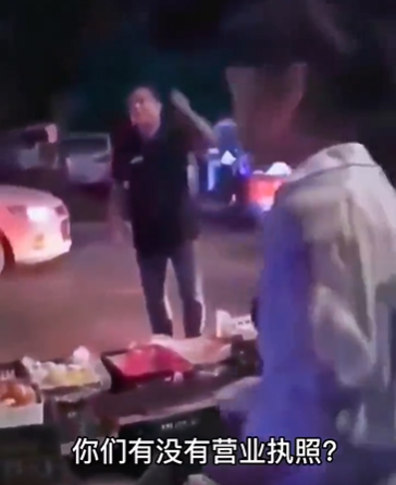由于这位大妈摆摊影响了交通,有一位司机大哥就大声质问大妈,“谁让你们在这卖东西的?有没有营业执照?”。