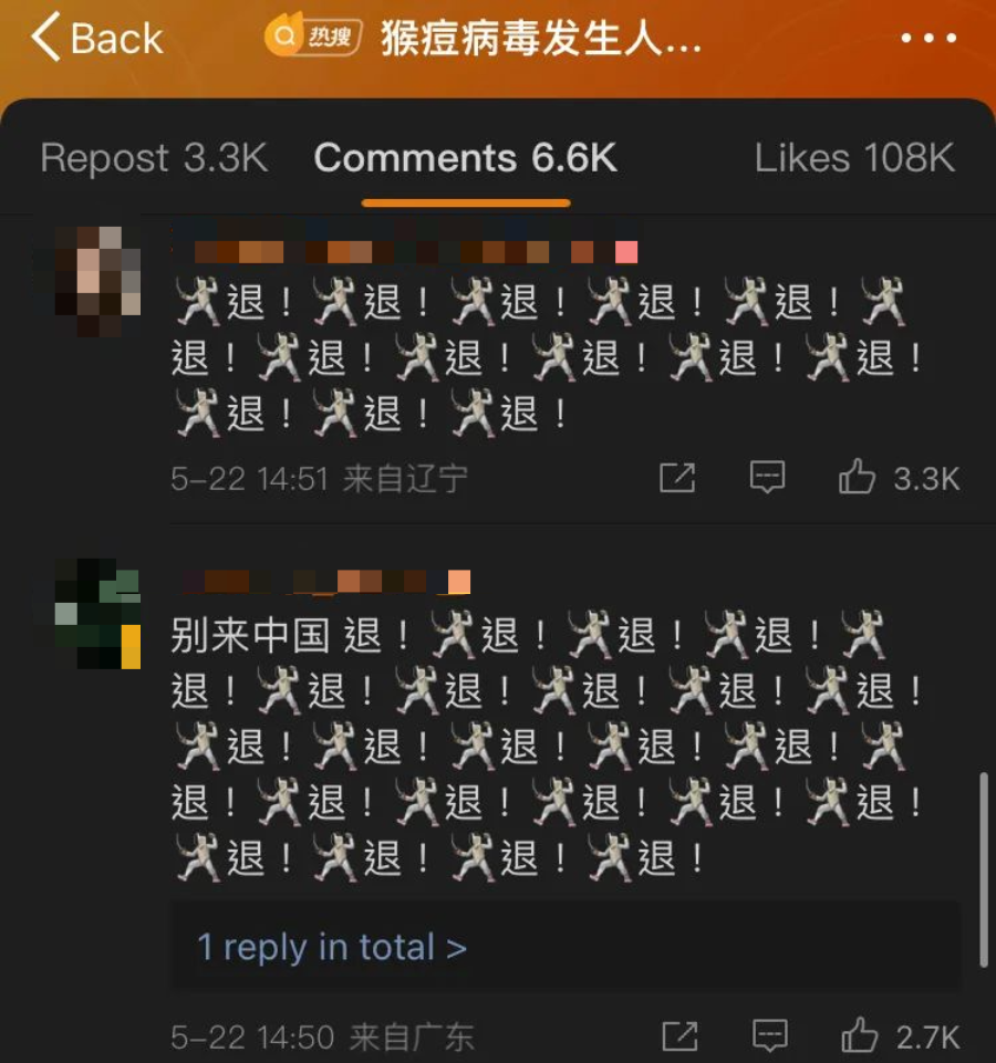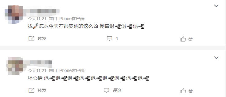 因为不是所有平台都能带表情包评论,而emoji表情里面击剑像极了她的标志性动作,所以大家开始用击剑表情配上退退退,显得画面感十足。