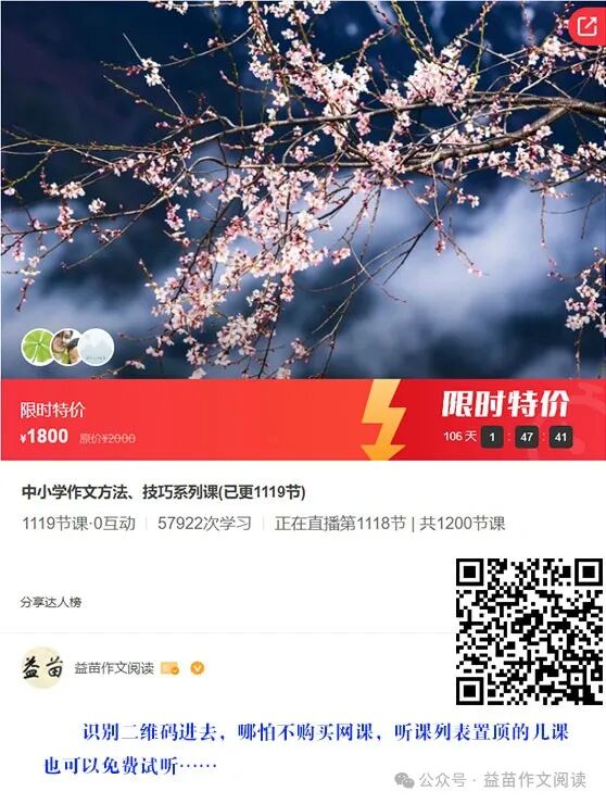 更多精彩,敬请关注:益苗作文阅读18979769063
