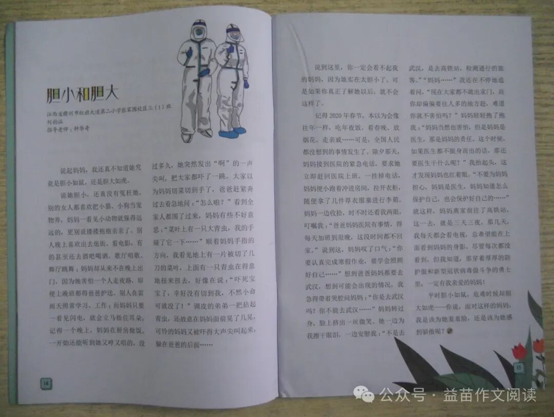 妈妈转过身,脸上挤出一丝微笑。她一边为我擦干眼泪,一边安慰我:“不是去武汉,是去高铁站,检测通行的旅客。”“妈妈......”我还在不停地追着问,“现在大家都不敢出家门,而你却偏偏要往人多的地方赶,难道你就不害怕吗?”妈妈轻轻抱了抱我:“妈妈当然也害怕,但是妈妈是医生,那是妈妈的责任。这个时候,如果医生都不挺身而出的话,那还要医生干什么呢?”我抬起头,这才发现妈妈也在红着眼。“不要为妈妈担心,妈妈是医生,妈妈知道怎么保护自己,也会保护好自己的……”就这样,妈妈离家前往了高铁站。这一去,就是三天三夜。那几天,我每天都会看电视,总希望能在上面看到妈妈的身影。尽管每次都没看到,但我知道,那穿着厚厚防护服,在和新型冠状病毒做斗争的勇士里,一定有我那亲爱的妈妈!