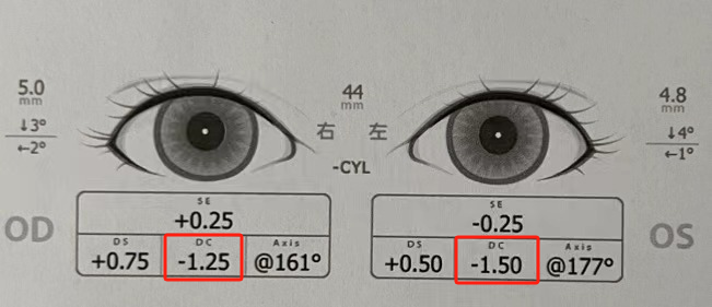 去正规医院或专业的眼科医疗机构验光,检查具体的度数。大部分100度以内的单纯顺规散光不影响视力时可不配镜,而逆规散光对视力影响相对更大,即使100度以内仍可能需配镜矫正。总的来说,高度数的散光以及对视力有影响的低度数散光患者均需戴镜矫正。