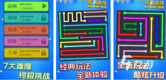 这里也包含了1200多个挑战的关卡,所包含的玩法也完全不同,比如有宠物连线以及怪兽乐园等等,玩家可以根据自己的喜好以及自己的实际情况去正确挑选。还包含了多个不同的难度选择,从容易到大师应有尽有,玩家可以结合自己的实际情况去挑选正确的关卡。主要的规则就是在线与线不相交的过程当中,将两个相同颜色的点连接在一起。