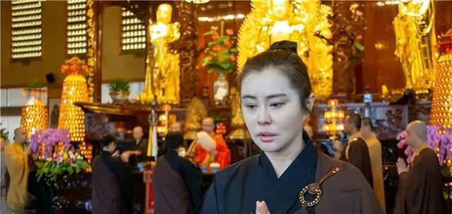 Joey Wong手里拿着熏香,准备把它插进香炉。她看起来非常严肃和虔诚。她没有任何人陪同。她非常低调。