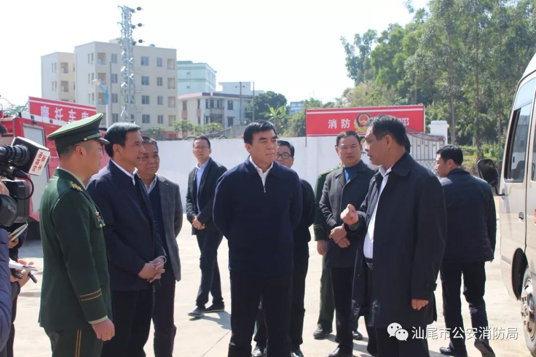 2月6日,汕尾市委书记石奇珠到海丰县实地检查消防安全隐患整治工作。市委常委、纪委书记曹小华,市委常委、统战部长余锡群,海丰县县委书记邱晋雄,市委秘书长施立晖,海丰县县长郑俊雄等领导陪同检查。