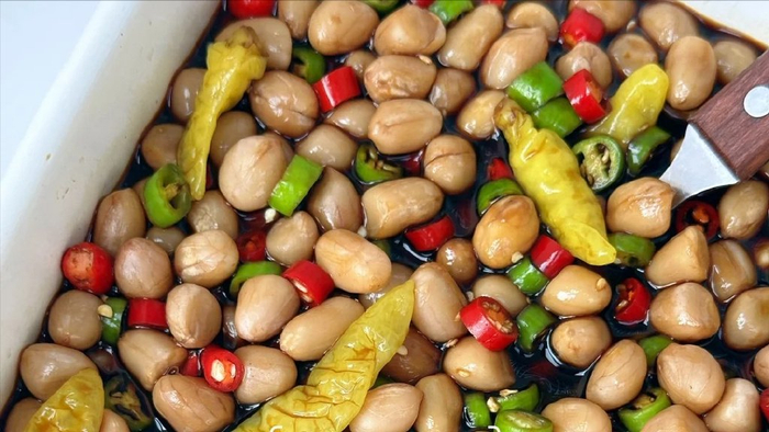 糖霜花生 3、喜欢吃辣椒的还可以切点青线椒和小米椒。
