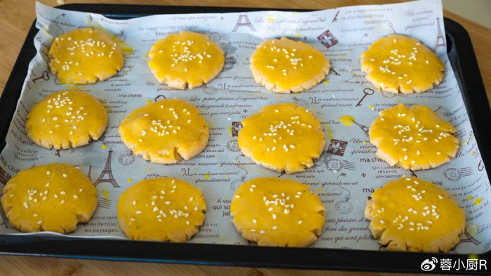 3、表面再薄薄刷一层蛋黄液,撒上白芝麻,烤箱大家记得提前预热;