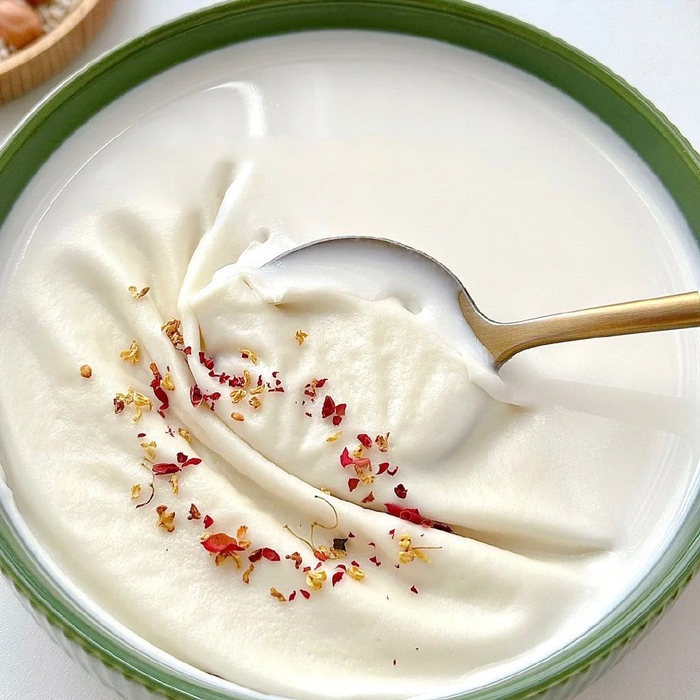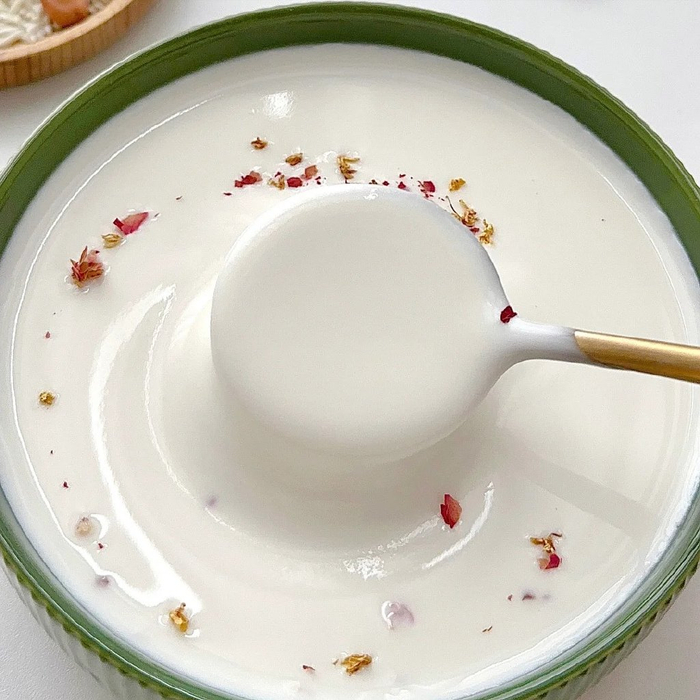 3、根据个人口味加冰箱,然后500毫升清水,用热豆浆模式打30分钟,倒出来撒点干桂花、玫瑰什么的就可以喝了。