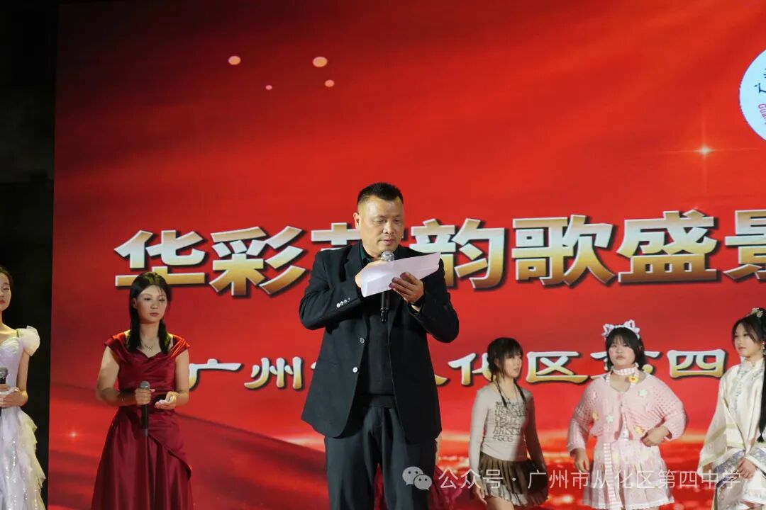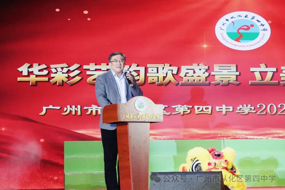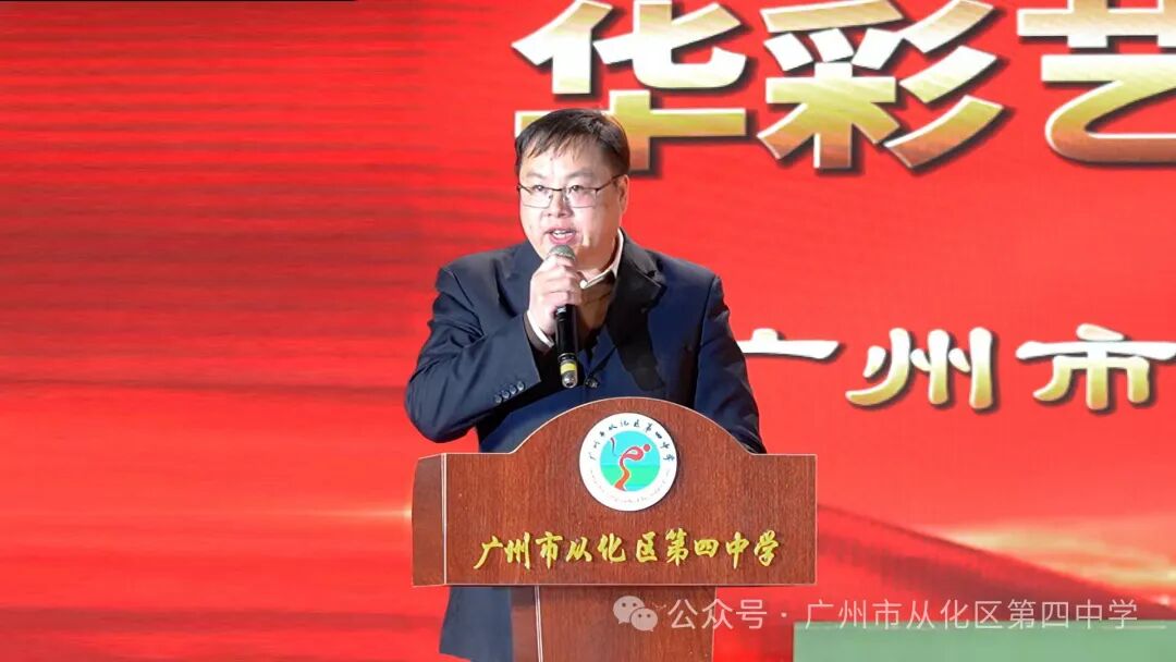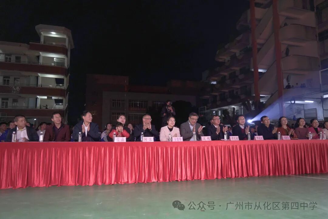 广州市从化区教育局党组成员、总督学沈峻发表讲话,肯定了我校师生近年来的努力和所取得的成绩,并希望我校师生要继续为四中及从化教育取得更好的成绩而努力。 舞台之上,节目精彩纷呈,高潮迭起;舞台之下,不时响起阵阵掌声、欢呼声,不断将演出推向高潮。