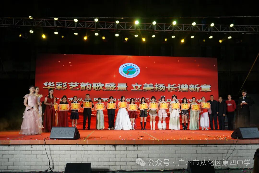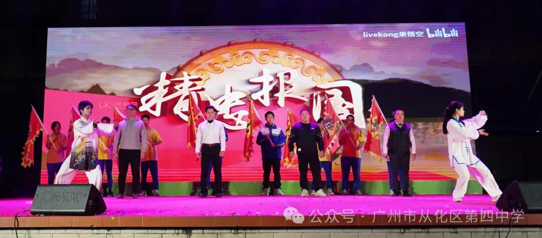 祥龙贺瑞辞旧岁,金蟒呈祥启新程。2024年12月26日晚上,在这辞旧迎新的美好时刻,我校元旦文艺汇演在篮球场盛大举行。全校师生欢聚一堂,用才艺展现青春,用热情迎接新年。广州市从化区教育局党组成员、总督学沈峻,广州市从化区街口街中心小学党支部书记、校长李武东以及从化四中全体师生和家委会代表参加了元旦文艺汇演。美扬