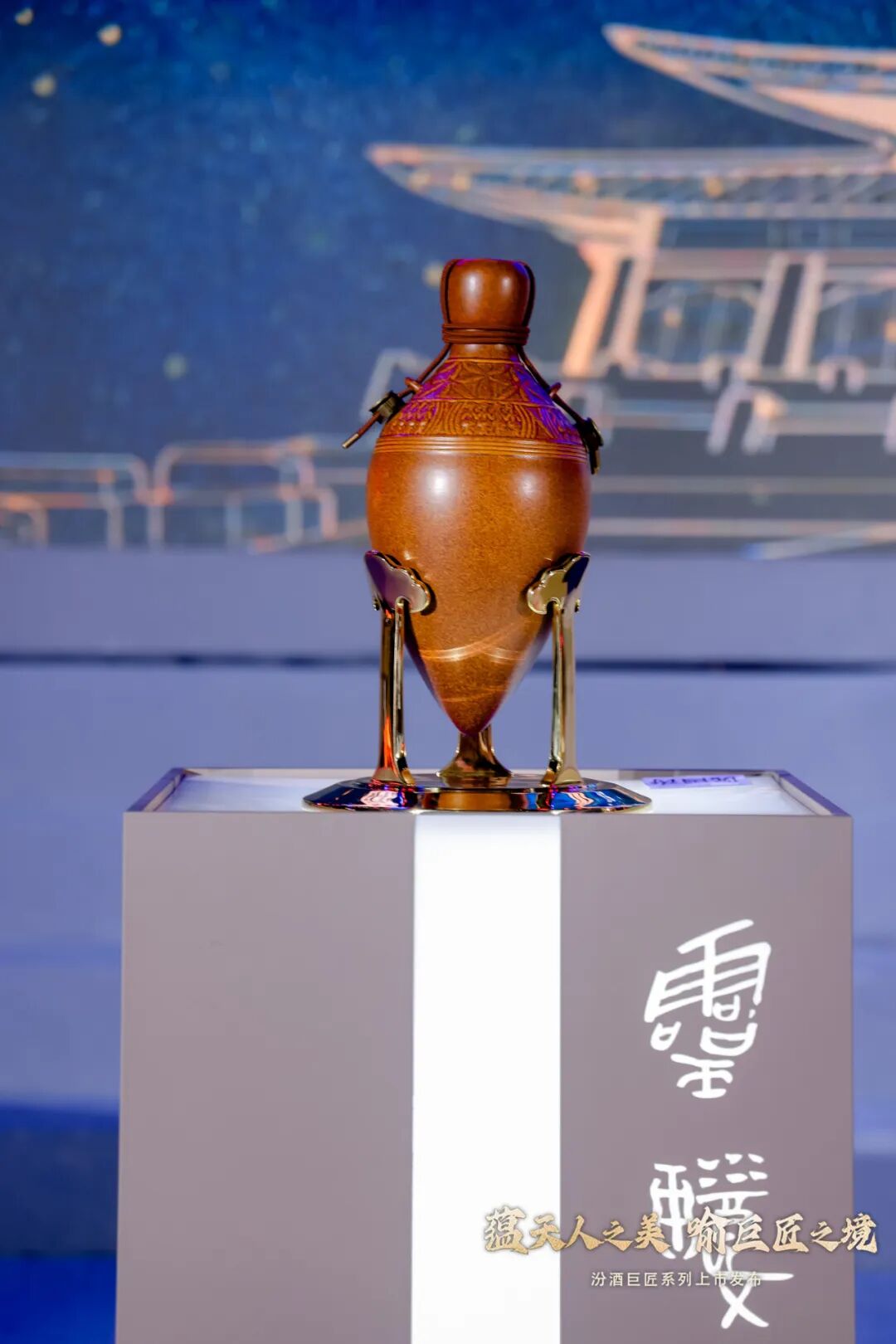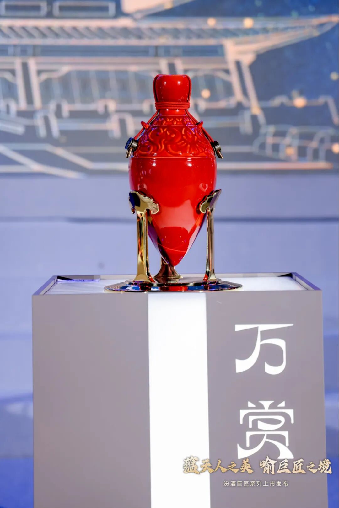 在全场的热切期待与瞩目之下,时光之门徐徐开启,身着华服的模特,手捧汾酒「巨匠」系列产品款款而出。从新石器时代仰韶文化的微光,到南北朝载入《二十四史》的御用之荣;从“牧童遥指杏花村”广为传颂的晚唐,到因诗酒大会入主《四库全书》的清中期;从民国初年名扬巴拿马万国博览会的一举夺魁,到见证开国大典的巅峰荣耀,循着6000年中国酒魂的文化根脉,一步千年,步步生辉。发布会上,随着嘉宾共同启动「巨匠」系列发布仪式,七款产品撼世首发。作为汾酒“活态文化”的代表之作,「巨匠」系列演绎了中国文化与匠心技艺的交相辉映,穿越时光的洗礼,绽放天人之美,勾画巨匠之境,灿然呈现在世人面前。汾酒全新「巨匠」系列,由雕塑艺术名家王艺担纲总设计师,国礼大师葛昊翔以独创“宝石釉”工艺烧制酒器,并与甲骨文设计创始人兼CEO刘文联合共创,承袭中华文明天人合一的五行哲学,以汾酒图腾“小口尖底瓮”为器型基础,重塑视觉符号。「巨匠」系列采用独特的“活态三非遗工艺”,即酒、器、盒分别采用三种不同非遗工艺,包括:非遗杏花村汾酒酿制技艺、非遗宝石釉工艺、非遗大漆/景泰蓝/细木镶嵌/木纹金工艺,通过潋滟交融的艺术化肌理,挥洒东方美学与诗酒情怀,打造酿酒匠艺、非遗器艺与文化底蕴创新交融的稀世珍品。酿艺六千载,巨擘擎酒魂。「巨匠」系列采用限量特调65度收藏级汾酒,臻选大师传世之酿,每一滴皆是六千年时光精粹与匠艺巅峰。由酿酒经验丰富的老匠人组成的非遗古法手工班团队,取地下840米的优质岩溶水,遵循非遗杏花村汾酒酿制技艺,纯手工酿造。国家级酿酒大师队伍,严控2182项标准,只选取10%特优酒,确保酒体清香醇厚丰满、口感层次分明、留香持久。本次面世的「巨匠」系列,撷取汾酒历史长河中六大鎏金时刻,加以艺术化、视觉化演绎,呈现「灵琼」、「帝鉴」、「诗问」、「御载」、「万赏」、「汾酒巨匠艺术家AP款·华典」以及「汾酒巨匠柒拾伍特别纪念款·华章」七款华彩臻品。「灵琼」回溯仰韶遗址,追寻中国白酒六千年清香。宝石釉酒器以天然墨玉为釉,融入仰韶纹饰。非遗工艺彩饰木盒取仰韶三色彩陶为灵感,木纹金工艺描绘6000年前酿酒史诗。「帝鉴」创意源自《二十四史》所载中国白酒永恒的家书:“吾饮汾清二杯,劝汝于邺酌两杯——北齐武成帝”。宝石釉酒器以天然南红玛瑙为釉,融入北齐石刻元素。非遗木盒受北齐壁画启发,景泰蓝掐丝工艺还原古典色彩韵味。「诗问」情怀归于晚唐诗人杜牧笔下的中国白酒千古一问:“借问酒家何处有,牧童遥指杏花村”。宝石釉酒器以天然墨玉为釉,融入唐代卷草纹饰。非遗木盒还原王艺《山系列》作品,细木镶嵌工艺表达对自然的永恒追求。「御载」记录了清中叶被《四库全书》收录的中国白酒名垂青史的盛会:“中国汾酒诗会” 。宝石釉酒器以天然海蓝宝石为釉,海水江崖双龙赶珠纹与回型纹相互交织。非遗木盒还原王艺《水系列》作品,非遗大漆工艺描摹中国山水的流动飘逸。「万赏」追忆中国白酒誉满全球的一举夺魁时刻:20世纪初,汾酒在巴拿马万国博览会获得甲等大奖章。宝石釉酒器以天然祁连山鸡血红碧玉为釉,融入民国初期的灯饰元素。非遗木盒以故宫高古云龙纹为灵感,非遗大漆金银平脱工艺呈现秩序美感。