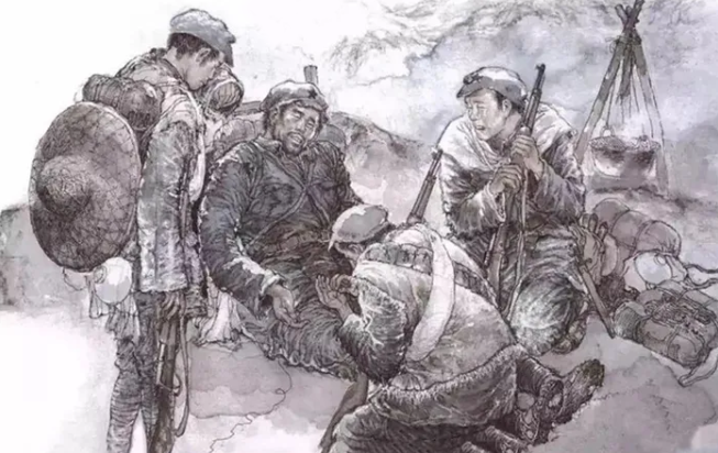 老班长的任务是尽心尽力地照顾三个生病的小战士过草地。