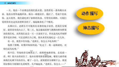 老班长严厉劝“我”吃鱼汤(第21、22自然段)