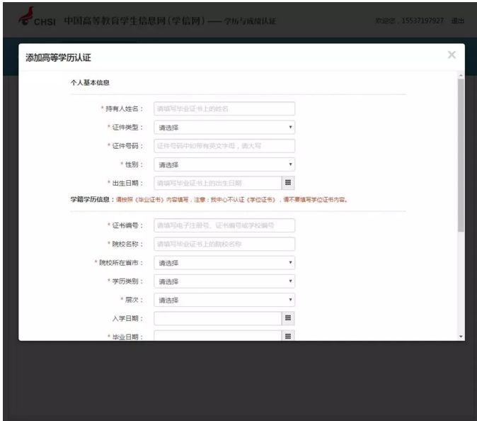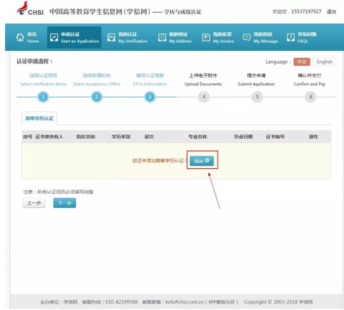 ③添加高等学历认证: