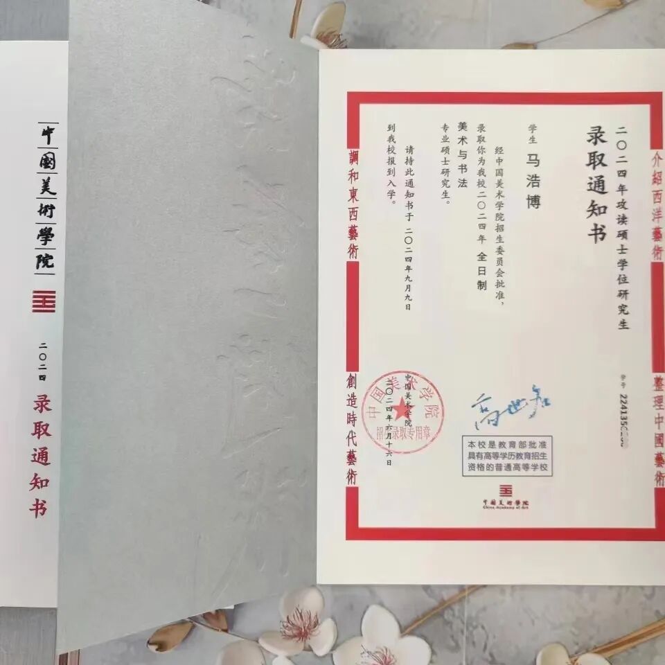 我希望在这样一个充满艺术氛围和学术活力的环境中,进一步拓宽自己的艺术视野,深化对书法艺术的理解和认识。我对于书法的热爱和执着也是驱使我选择中国美术学院深造的重要原因,在笔墨间寻找自我、锤炼技艺一直是我所追求的。