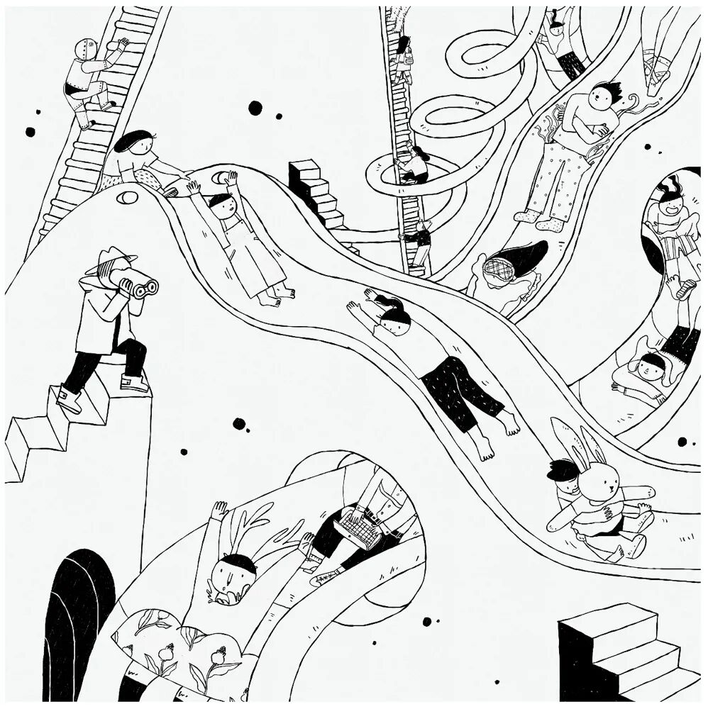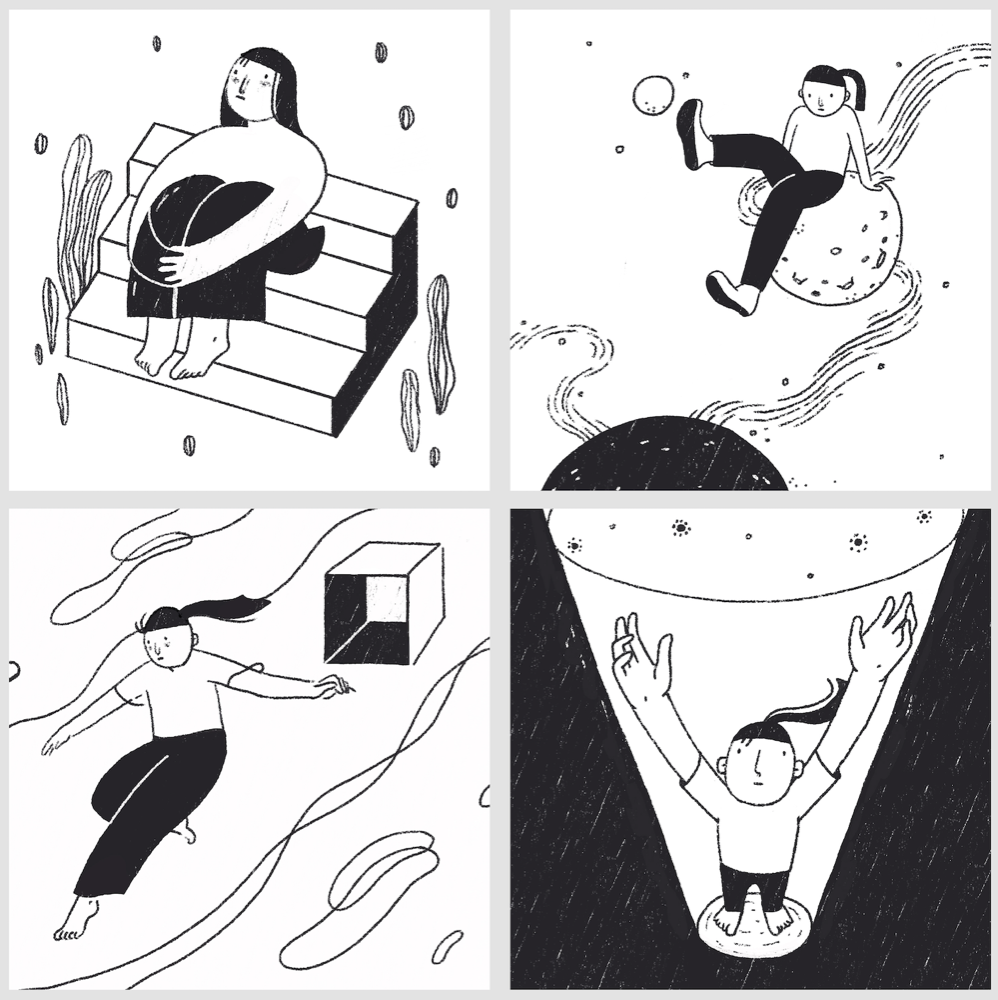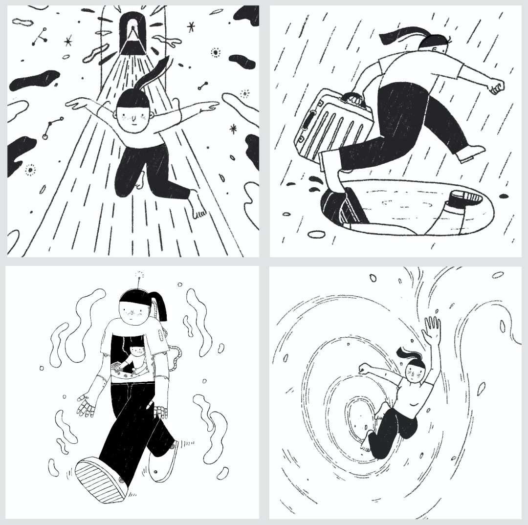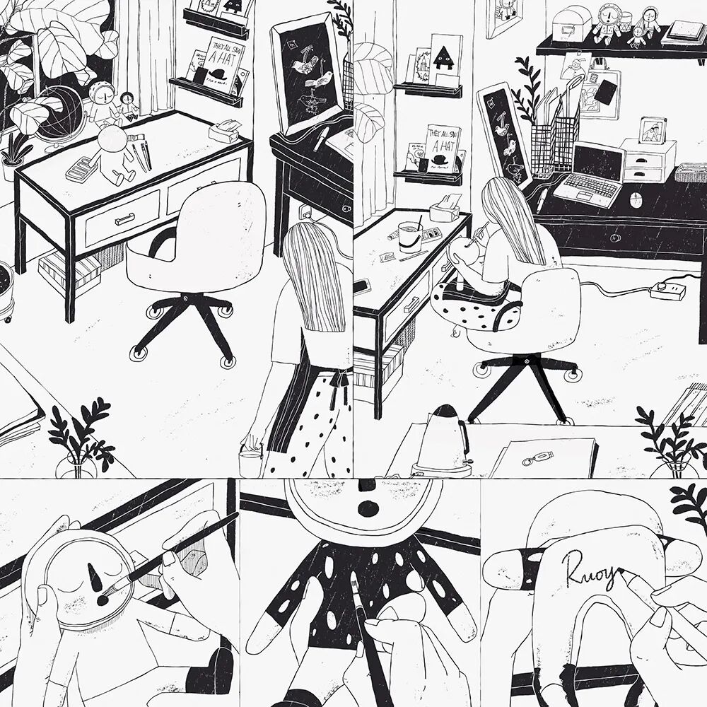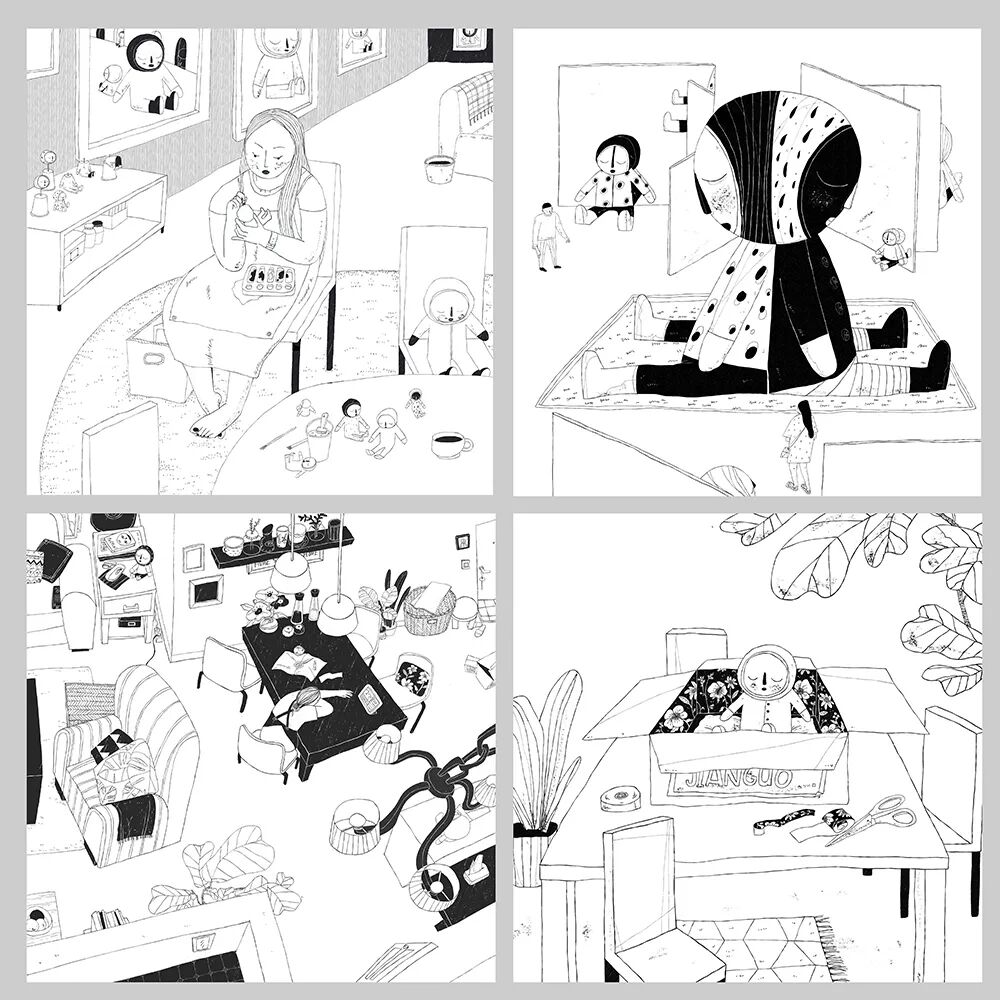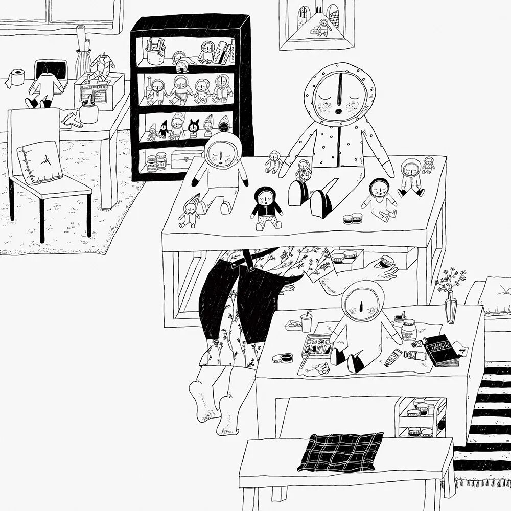 刘若一个展 LiuRuiYi Solo Exhibition 时间:2020.12.27-01.07 Duration:2020.12.27-01.07 地点:南艺美术馆零展厅 Venue:No. 0 Hall, Art Museum of Nanjing University of the Arts 学术主持:郑闻 Academic Director : Zheng Wen 艺术总监:张迅 Art Director : Zhang Xun 策展人:薛黑黑 Curator:Xue HeiHei 作品介绍 Me2 这两年,我有了很多变化。当然不仅仅是年龄变大了、肚子上脂肪变多了这等显而易见的事啦。初为人母,自己的很多事情被迫在做减法。比如,曾经悠然地铺开画纸,冲一杯热巧克力,选几首歌抑或隔窗听着细雨慢慢画画的日子不敢再奢求。现在,挤出碎片的时间,大多是在深更半夜,拿起笔在画板上随手涂抹几笔是我当下创作的常态。起初我坚持每日画几笔,是想记录孩子的成长,顺带保持自己画画的手感。后来我常常会把自己的心绪融入到笔触里,借助画画去抒发出来。所以,我好像不仅仅是在描绘孩子,也是在描绘自己,像是在记手绘日记。夜深人静时,难得独处的时间里,我用简单的黑白线条记录自己的所见所思所想。随着日子的流淌,在一笔一画地叠加中,我感觉在忙碌的间隙又找回了自己。于是,每日几笔的绘画与己而言就变得有趣了,这样的绘画日记也成了我现阶段日常思考和情感表达的实验方式。我用这种轻松简单的形式一点点积累自己,也传递出我对生活和爱等主题的亲眼所见和内心所想。 Sleepy Me(综合材料+数字绘画) 手作是我创作和生活的一部分。睡梦娃娃是我一直在做的一个主题系列。我觉得纸是一种自然淳朴有温度的创作材料,用纸塑造出仿佛有生命的娃娃对我来说是很治愈的事情,这个塑造过程可以消解我的疲惫与不安,是与平面绘画完全不一样的表达形式。 Mini Me(胶片打印) 很多小小的她,也是一个个小小版本的我。 艺术家介绍 刘 若 一 硕士,毕业于南京艺术学院传媒学院动画专业,现于传媒学院动画专业任漫画专业方向讲师。兼职插画师,长期为幼儿杂志与儿童文学读物绘制内页与封面。 虚谷藏真--刘若一漫画浅解 刘若一近年刘若一老师的漫画创作出现了明显变化,拙里藏真,坦诚相见似乎是新的倾向。这批漫画里随处可见她的日常生活,些许机智、幽默、尴尬、无奈,以及期待,既不彰显也不隐藏,大大方方承载着个人思考。也许是相识太久的缘故,这竟与她之前给我留下的精致舒雅、内秀柔弱的印象颇有距离,结婚生育的经历又一次扮演了激发女性意识的狠角色吗?抑或她身体里本就储存着不为人知的小宇宙? 在漫画的世界里,女性本就占据了重要位置,存在着少女漫画、淑女漫画等一系列细分类别。这其中即便只是满足浪漫幻想的通俗作品,或多或少亦涉及到女性意识,而一些作者更旗帜鲜明地以女性意识为表达中心,比如诠释泡沫时代虚幻欲望的冈崎京子;借历史之影展现女性空间的杉浦日向子;以身体探索内心成长的Ulli Lust;更有《我在伊朗长大》的作者马赞·沙塔碧,持续在不同文化背景、不同年龄中以艺术家的智慧关注女性话题。而在这些阅读与表达的背后,自然有着大半个世纪女性主义思潮对整体社会观念的影响。从马克思主义以劳动出发的性别分工视角,到波伏娃的“阴性化”社会建构;从拉康想象态思路中的母子,到克里斯蒂娃的“母性”;从福柯的权力结构分析,到伊芙·塞吉维克的他者认同与自我认同,女性主义相关思潮反复调整着自我认识的策略,并影响了生活方式与社会形态。女性主义最有价值的是提供了一种偏离中心化的坦率视角,丰富了自省的内涵,延伸出接受差异,关照他者,削弱偏见等一系列当代重要议题。 回到刘若一老师的漫画,大致有三个方面让我感觉有趣。一,无表情。漫画中的人物行住坐卧,或动或静,都处在一种机器人似的客观氛围中。那真的是无态度吗?从作品情境的塑造中,又可以清晰地感受到作者的情绪。作者意向与漫画中的自己形成了同一性的不同侧面,这就形成了自我观察的可能,也促成了对自我身份复杂性的探究。曾经有位爱晒娃的朋友打趣,称自己在母乳期就是个“行走的奶瓶”,过不一会儿又半骄傲半自嘲地展示抱孩子练出的二头肌,错位的表达当然很幽默,但五味杂呈大概是许多母亲给人留下的普遍印象。“母亲”一词由于种种原因,常常被约束在固定观念中,但这内里其实安放着大量矛盾的能量吧。西方古典绘画中也常见无表情的圣母,任由怀中的耶稣忸怩作态,不动声色,虽然画面在表现母性优雅方面登峰造极(比如拉斐尔),但实则向观者散发的是男性中心的神之光辉,是威仪与宽恕,强调的是“圣”而不是“母”。可见“无表情”作为手段,有一种邀请观者进入后台的仪式感。刘若一漫画中的“无表情机器人”穿越母之表层,又将邀请我们拜访何处呢?二,无性征。这批漫画中有一个越来越鲜明的中性形象--穿着黑裤、T恤,大脚板,以一种充满力量的风格行事(比如雨中拖着箱子狂奔)。漫画家罗伯特·克鲁伯也喜欢描绘强悍的女性,因为他有恋母情结。韩国电视剧《甜蜜家园》塑造了一个颇受追捧的金刚芭比形象,似乎暗合波伏娃在《第二性》中强调的女性阳刚气质,但细品下来不过是消费主义策略。同样近似的外型,内部考量可能完全不同。关于这个形象,刘若一的极简回答是:好画!稍微一想这个理由非常合理,在育儿和工作的碎片中,要保持创作记录感受,快速非常重要,另外居家的不修边幅也是现实。更重要的,早期亲子阶