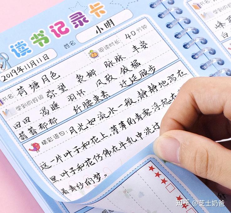 读书笔记不是一天炼成的,需要持之以恒的努力,家长可以用阅读记录卡来帮助孩子增加仪式感。一张精美的阅读卡,可以使孩子的阅读兴趣不断高涨。最开始我们可以只要求孩子写出书名、作者及作者的简介即可,慢慢的可以给孩子加大难度,加入我喜欢的词语、句子的积累,到了三年级以后,可以加入内容摘要,甚至是阅读感受、提出问题等。 金值小学生读书笔记封面卡通可爱,小孩子都喜欢。还有书名、作者、生字、好词、精彩语句、读后感受等专为1-2年级设计的内页。80g加厚纸张,多次擦写不会破。加厚外壳,防水耐脏,32张/本,一包等于5本,一张等于2页。 这款阅读记录卡,共100张=200页,还赠送课程表。采用活页可拆卸的方式装订,外壳是pp磨砂半透明,内芯为双胶纸,有A5和B5两款可选。加厚纸张可双面书写,不易渗透,活页拆卸方便收纳,排版合理,有助于培养孩子的阅读习惯,建立读书资料库。 誉禾活页读书记录卡选用透明磨砂表面,柔韧度高,不易损坏,防尘耐用,可以陪伴孩子更久。100g加厚优质双胶纸,书写不透墨,双面使用更耐用,内页配套活页A5替芯,一本可装50-100张,规格适中,轻巧便携。活页装订,可人手一张也可人手一本,轻松收纳。 金值这款活页读书笔记本的内页由书籍购买清单、月读清单、摘抄页和灵感页组成。书籍购买清单可用于定制读书清单,并展示是否完成阅读,使阅读更系统,更清晰。活页装订设计,可重复添加补充页,纸张采用100g的道林纸,厚实耐用;而舒适柔软的表皮,使得随身携带无束缚。有A5和B5两款可选,还赠送贴纸和收纳袋。 玩控的这款活页阅读卡纸张细腻,书写顺畅,活页装订,易开易合,可替换内页,易于收纳和整理。120克双胶纸,加厚纸张不晕墨。双面彩印,更耐用;A5大小,携带方便;加厚外壳,防水耐磨。 品牌:得力始于1981年,办公用品代表性品牌,国内大型办公与学习用品产业集团,提供一站式综合文具整体解决方案。极致匠心,创意不止,致力于为全球消费者提供具有性价比的产品。得力的阅读存折极具创意,深受喜爱,让孩子的学习更得力。 得力的这款阅读存折内页由基础信息、开页宣言和阅读记录组成,可鼓励孩子树立阅读目标,有计划地完成阅读任务。萌伊主题图案,是孩子喜爱的卡通封面,可提供阅读积极性。80克白纸,双面彩印,内芯16张,纸张加厚,不易洇墨。封面采用300克铜版纸,高清彩印表面平滑光亮,印刷色彩均匀美观。