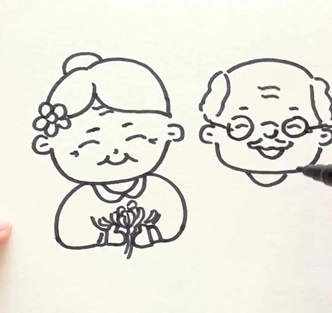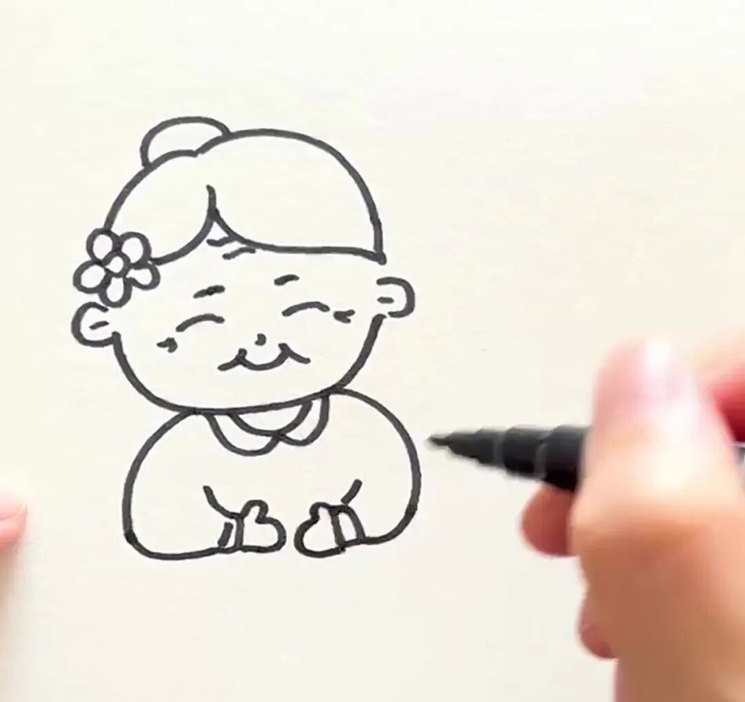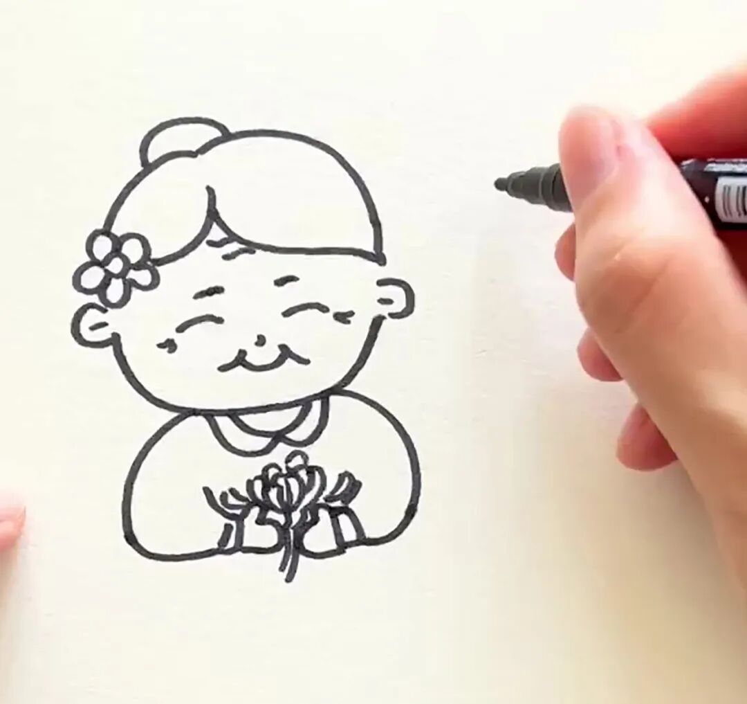 步骤三:画出老奶奶手中的菊花。