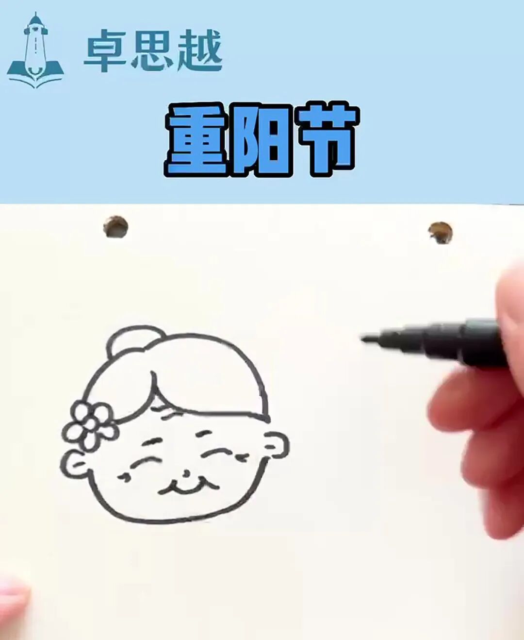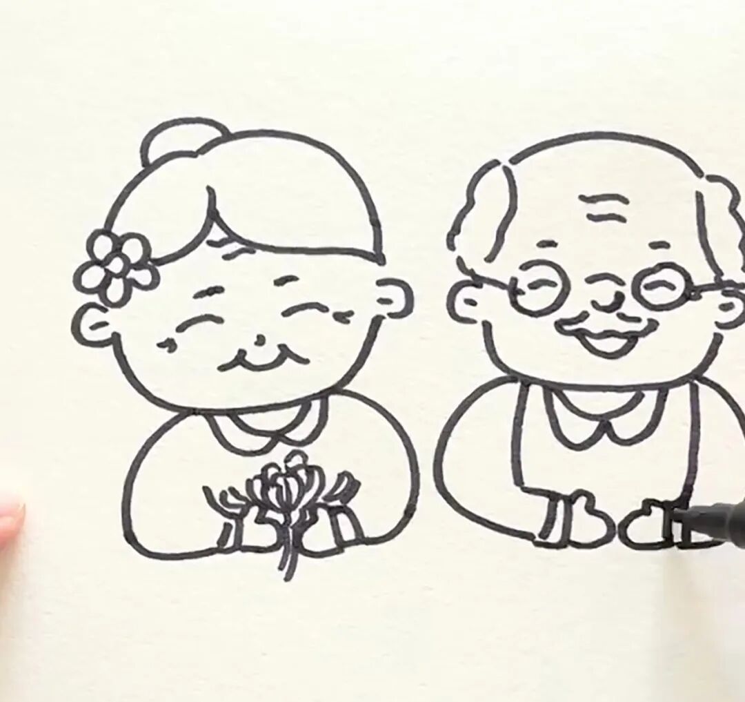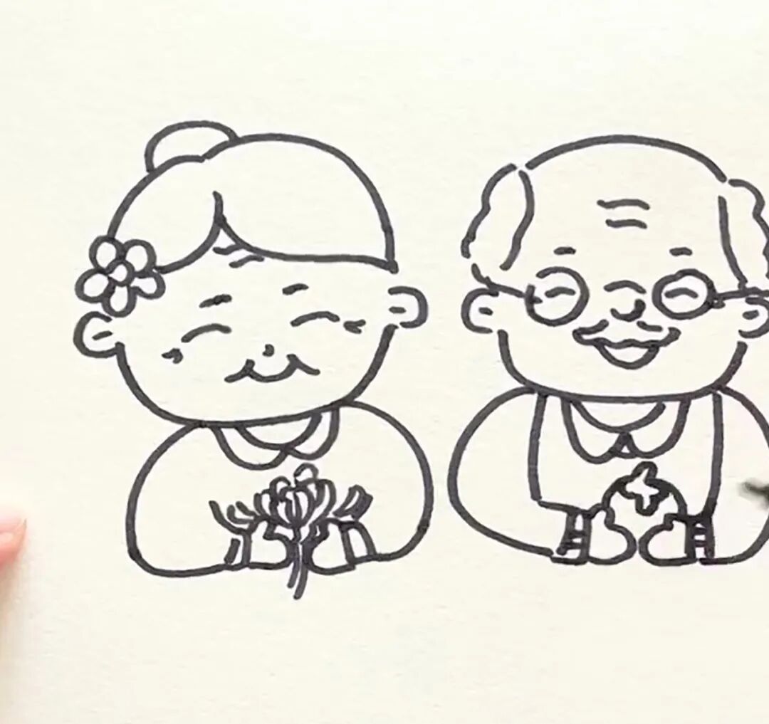 步骤三:画出老奶奶手中的菊花。