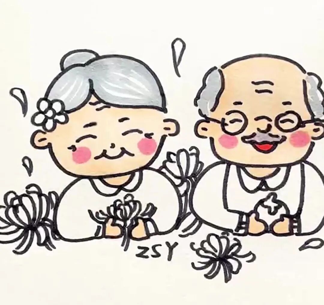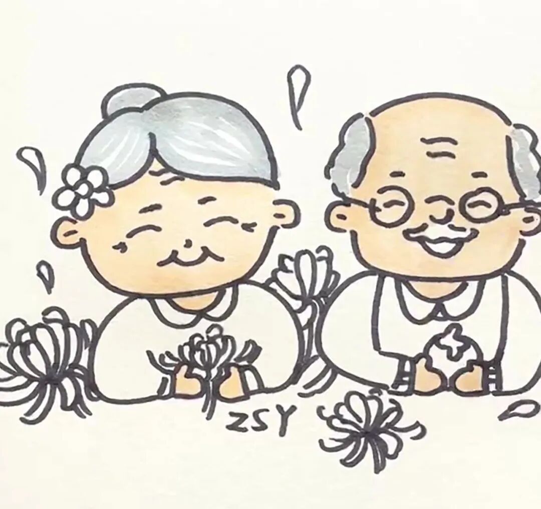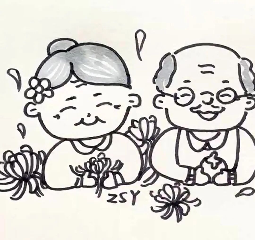步骤八:用灰色涂爷爷奶奶的头发,并注意留白。
