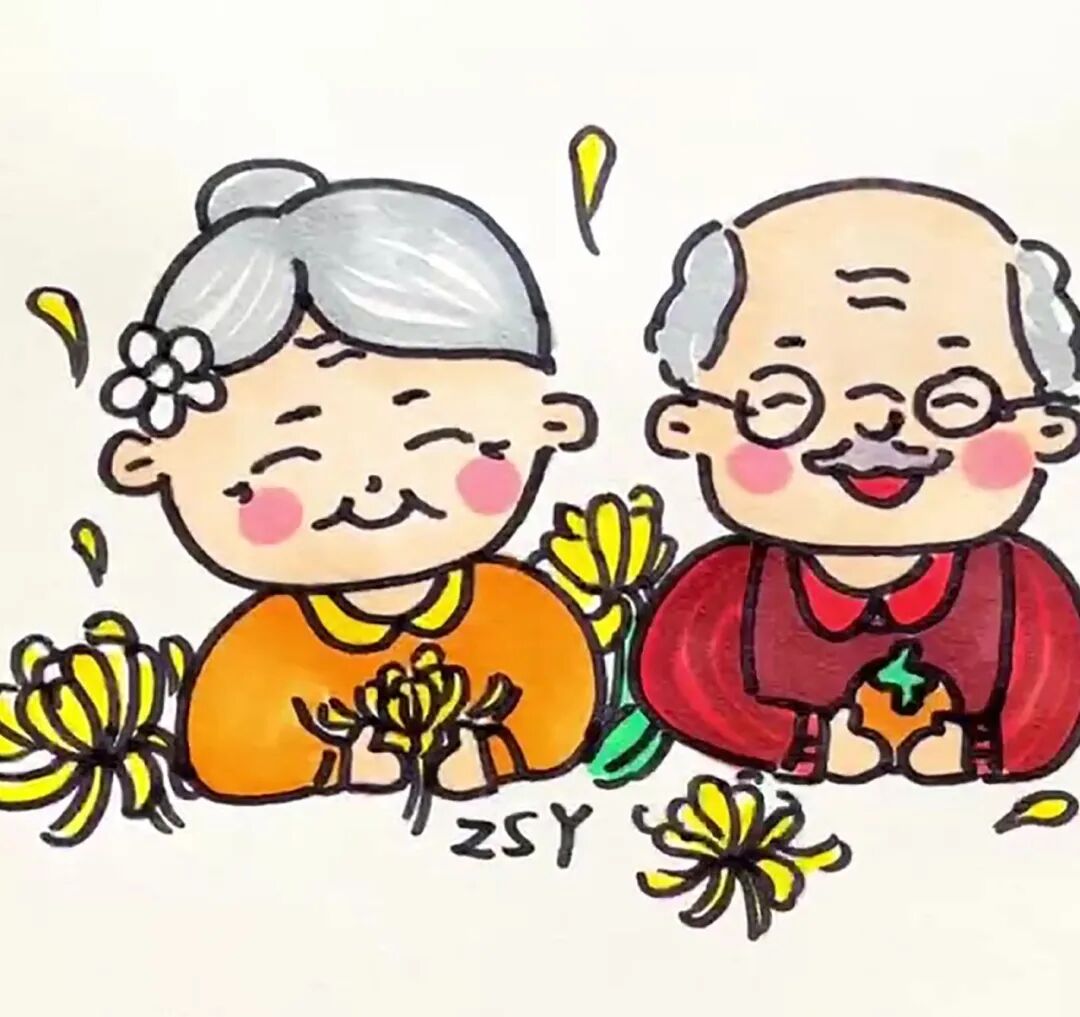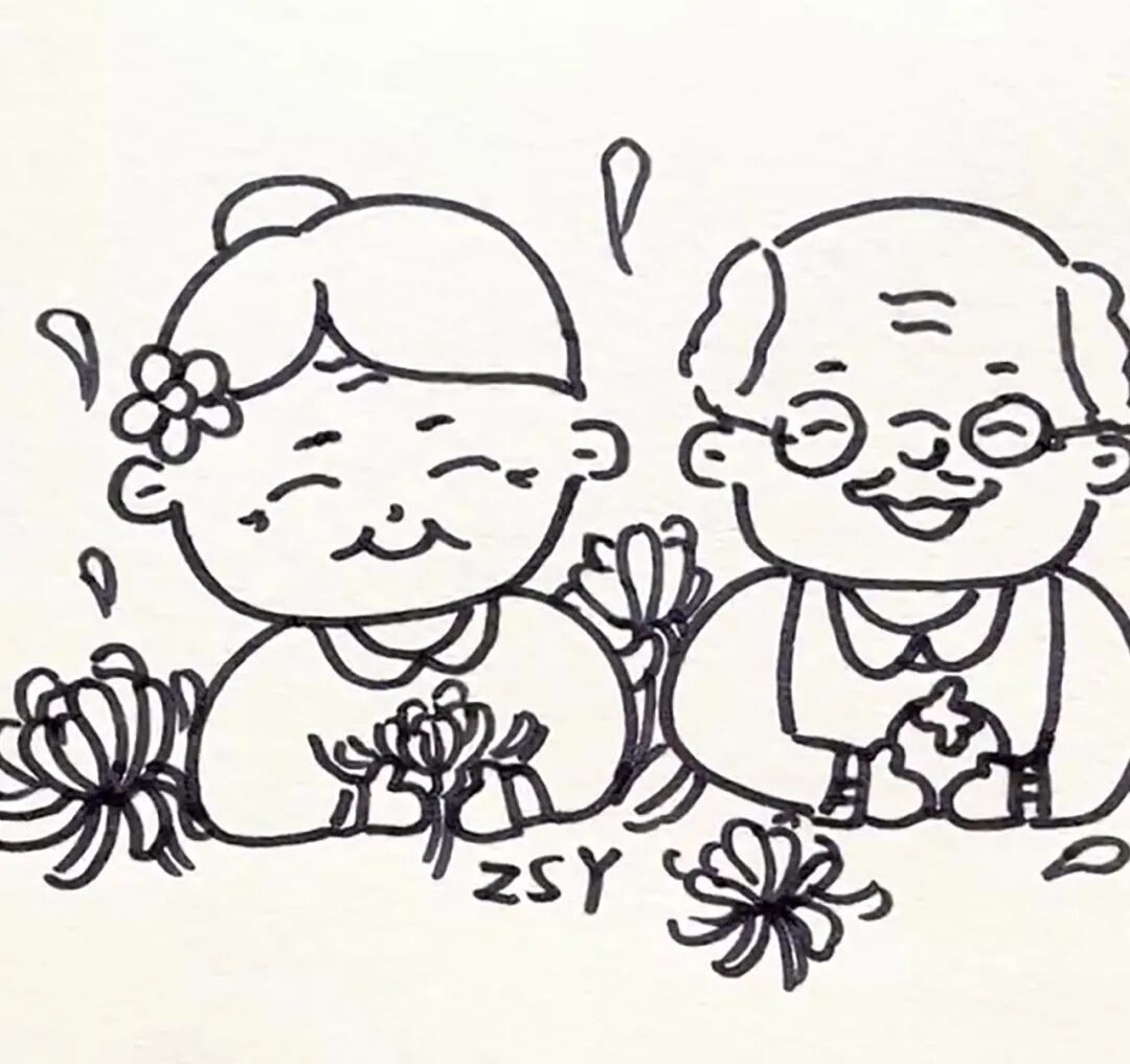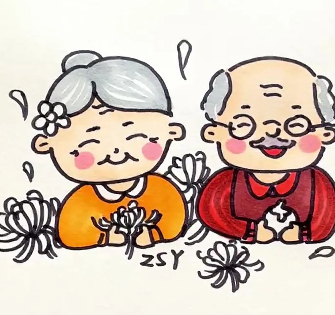 步骤八:用灰色涂爷爷奶奶的头发,并注意留白。