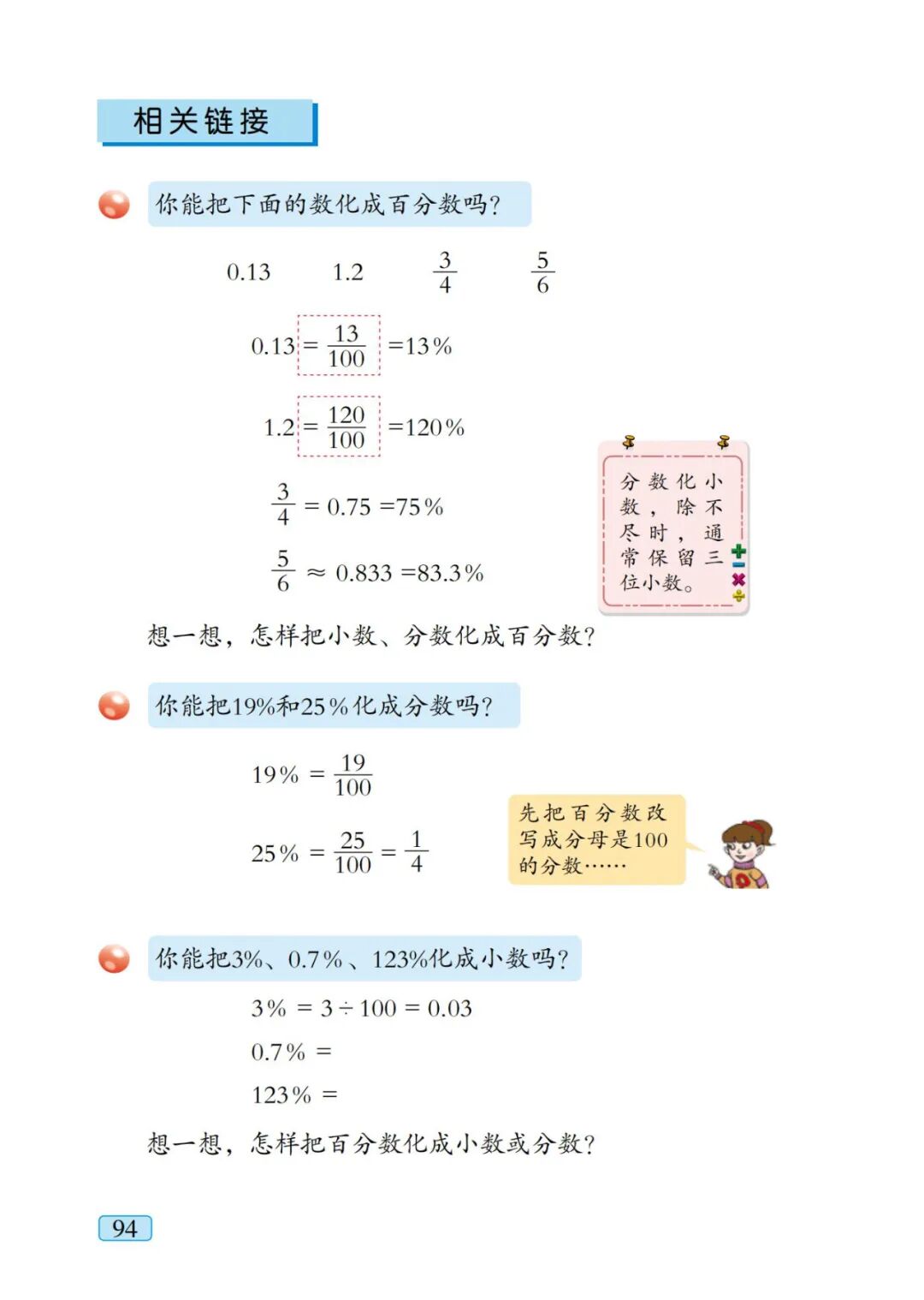 师:取近似值,一般要求百分数的分子要保留一位小数,那么当把分数化小数时应保留几位小数?