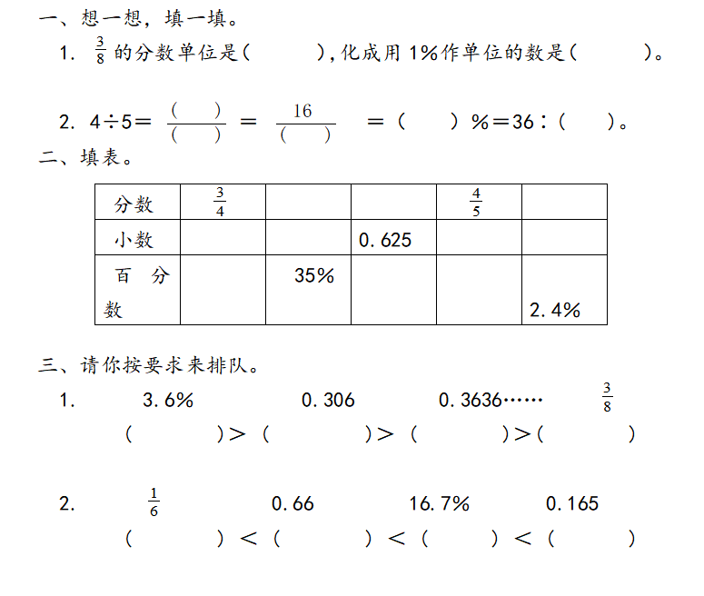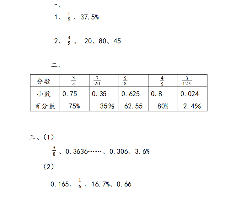 3、百分数化分数:a%=a/100(化整化简)