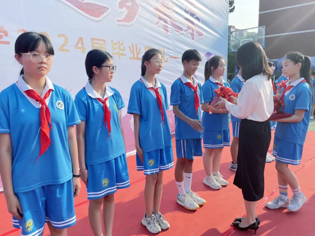 全体毕业生怀着激动的心情齐聚操场,在老师和家长的陪伴和见证下,参加了这场特别的成长仪式。鲜艳的红领巾在胸前飘扬,灿烂的笑容在脸上洋溢,对未来的期待在眼中闪烁,深深的离别之情在师生心中荡漾。